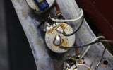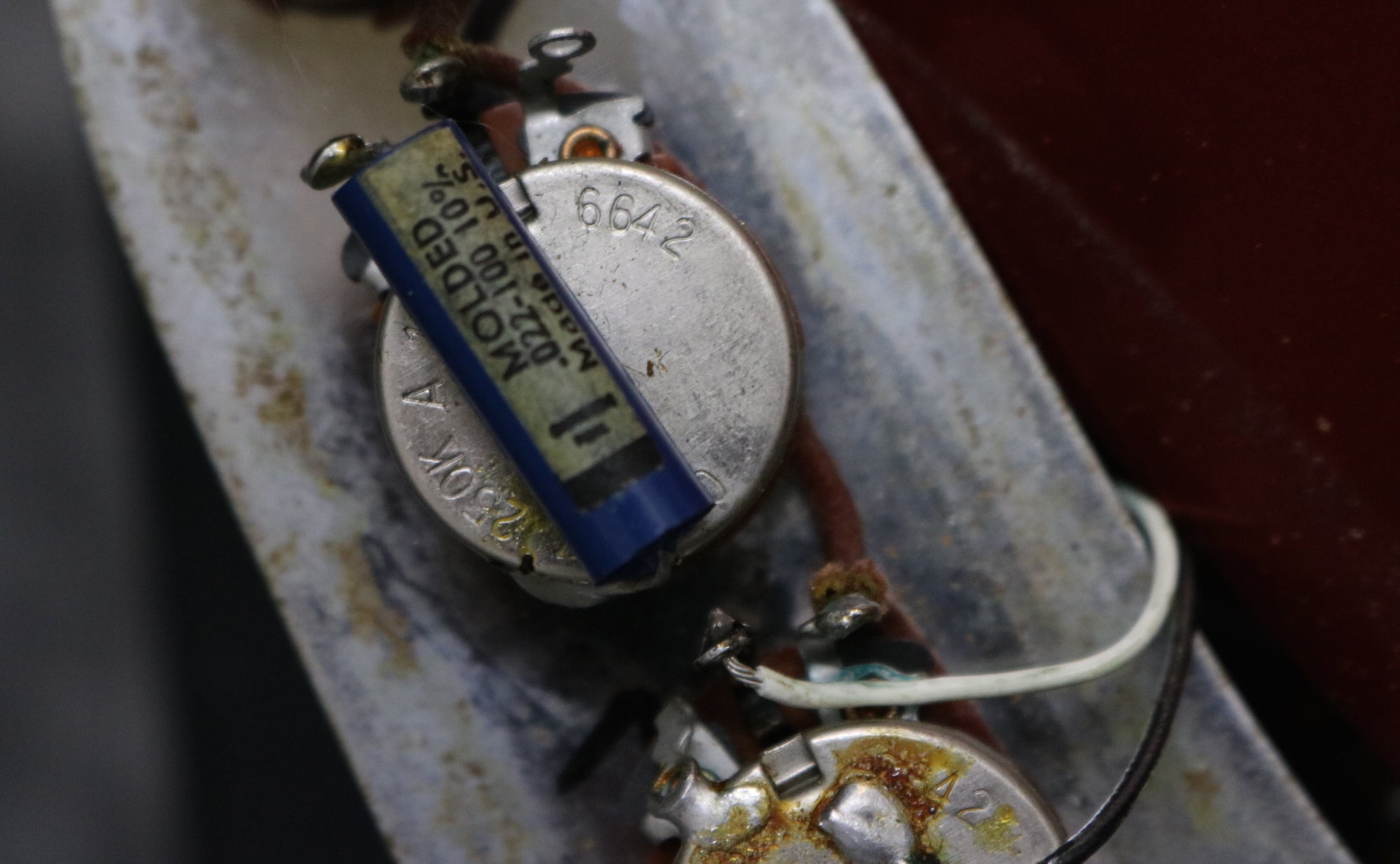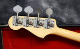 The bass is set up nice and low with a smooth action and a fresh set of D'addario round-wound strings. It has a great sound with a warm tone and plenty of growl. This is a great bass to play and balances nicely weighing 9 lbs 3 oz. The truss rod works as it should without issue. All 3 pots date to the 42nd week of 66. (pots dating to 66 are commonly found in Fender basses from 66-69) The pickups date to 1969. The nut width is 38 mm. Depth at 1st fret 22 mm.