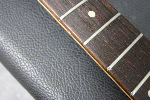 The body finish has a few scuffs and dings around the edges but overall it's extremely clean and the sunburst is still very vibrant. The finish on the back of the neck is free from wear and the headstock has only light wear with just a couple of small scuffs around the top edge. The frets are in excellent condition and have plenty of life left in them.