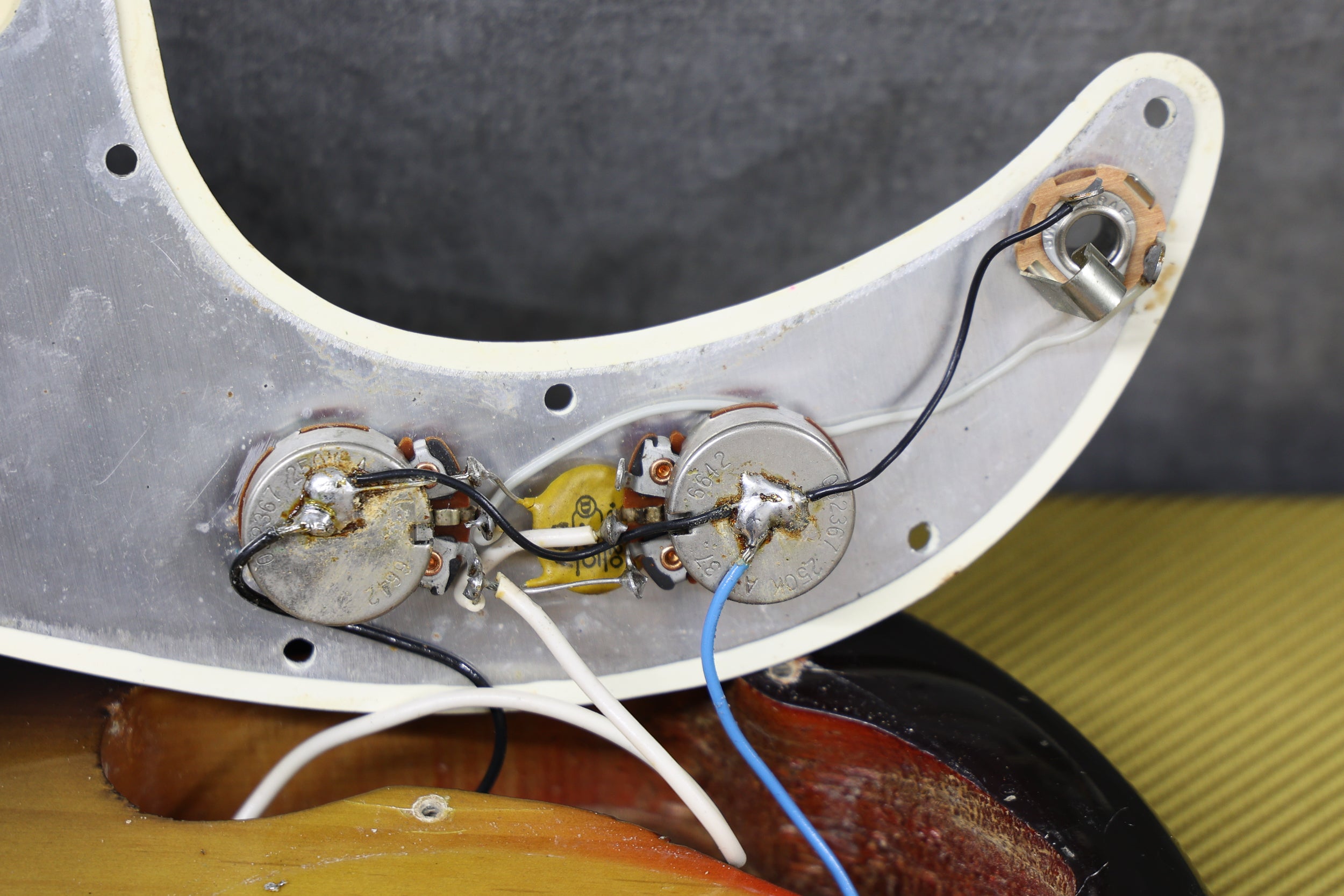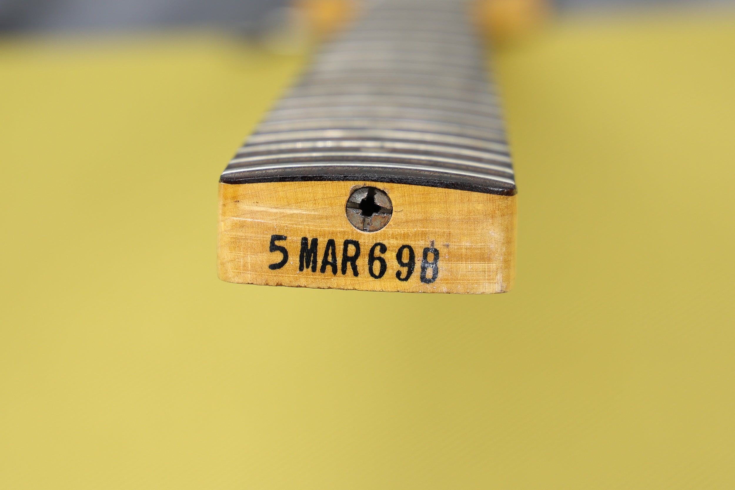 It's been fully set up in our workshop with a fresh set of Rotosound nickel rounwound strings. The truss works correctly, and the neck is straight with great action. Serial:243869. The neck stamp reads Mar 69 B. The pots date to the 42nd week of 1966, which is common during this period. Also common for the period was the use of leftover black bobbins for the pickups. Nut width: 42mm. Depth at 1st fret: 22 mm. Weight: 8lbs 9oz / 3.89 kg.