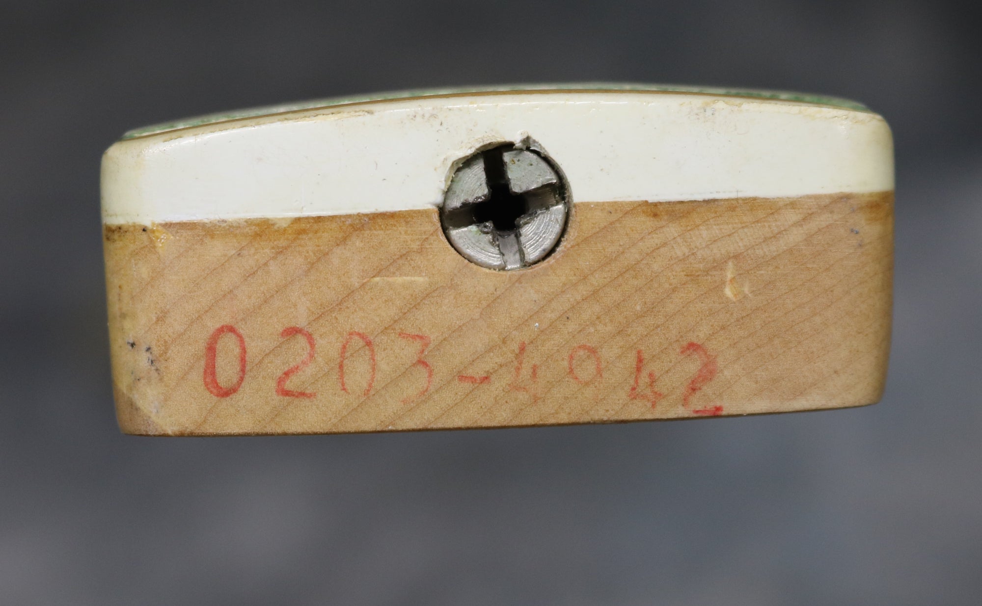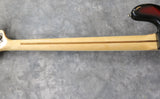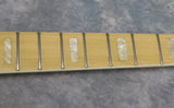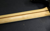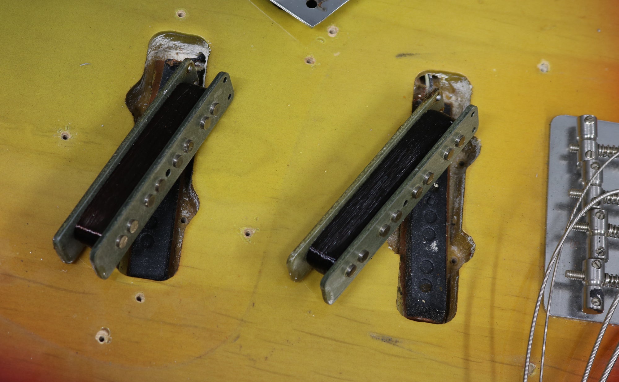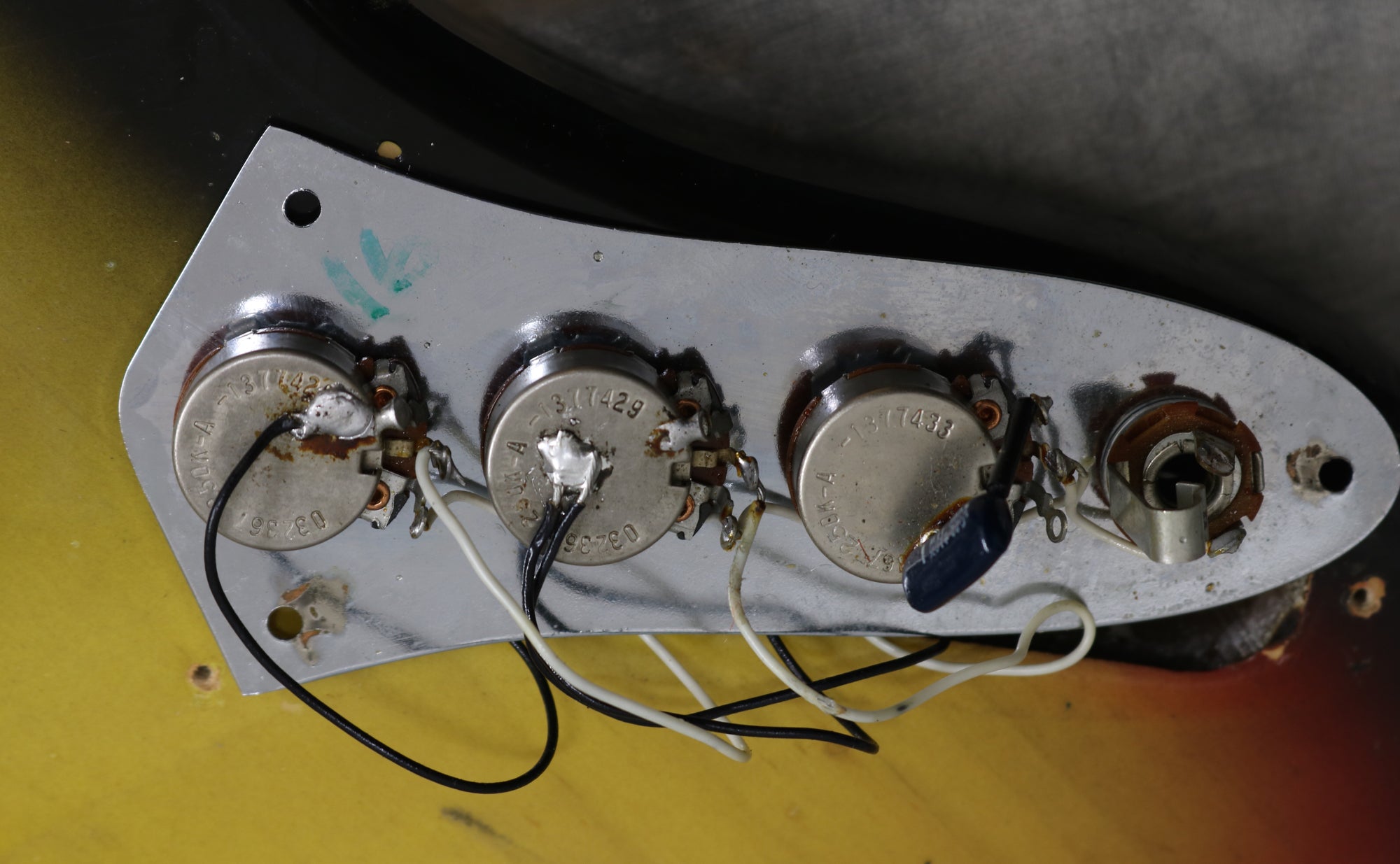The finish has a fair amount of playwear with quite a few scuffs and dings to the body finish, mainly around the edges. The headstock also has a few scuffs around the edges. There is a small ding on the edge of the fingerboard binding (between the nut and the 1st fret) otherwise the binding is all intact. The frets have very little wear. The truss rod works as it should and the neck is straight.