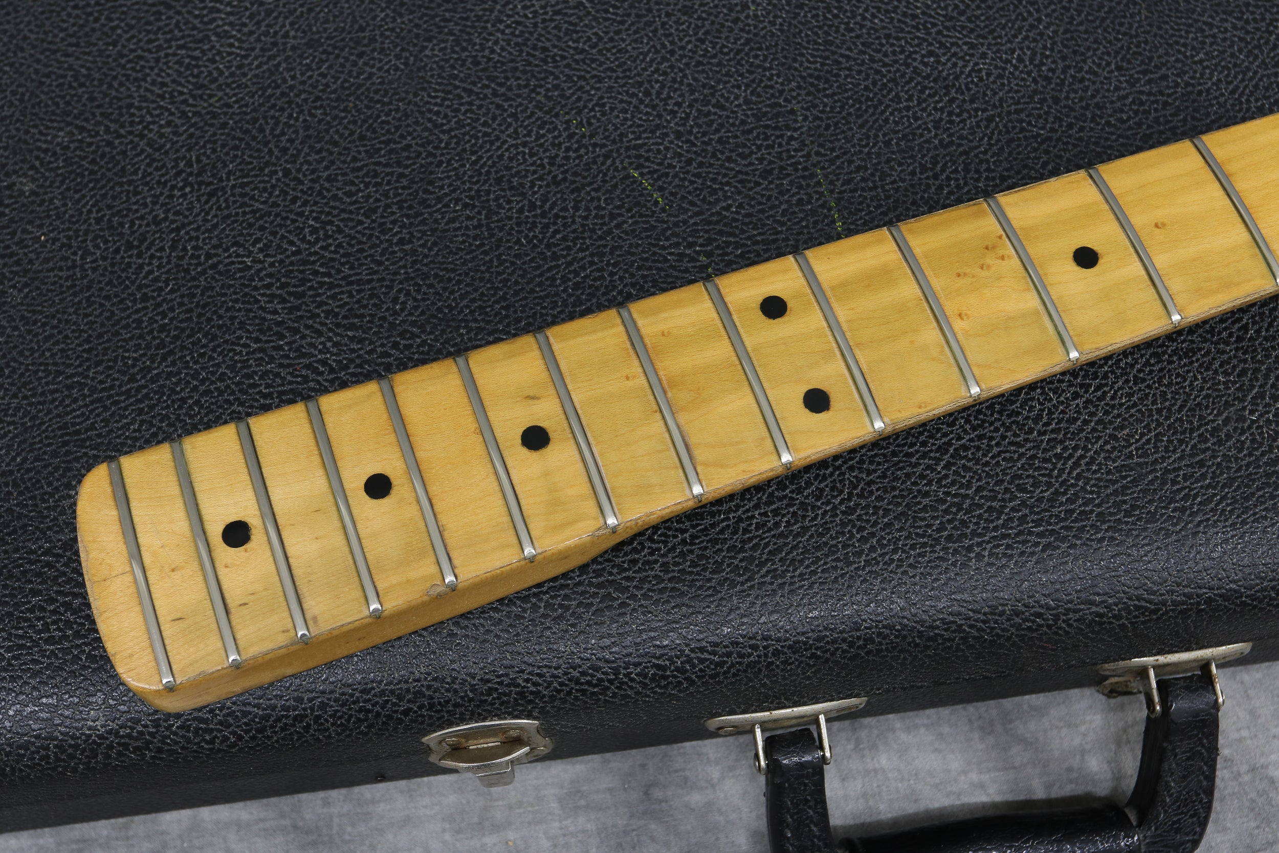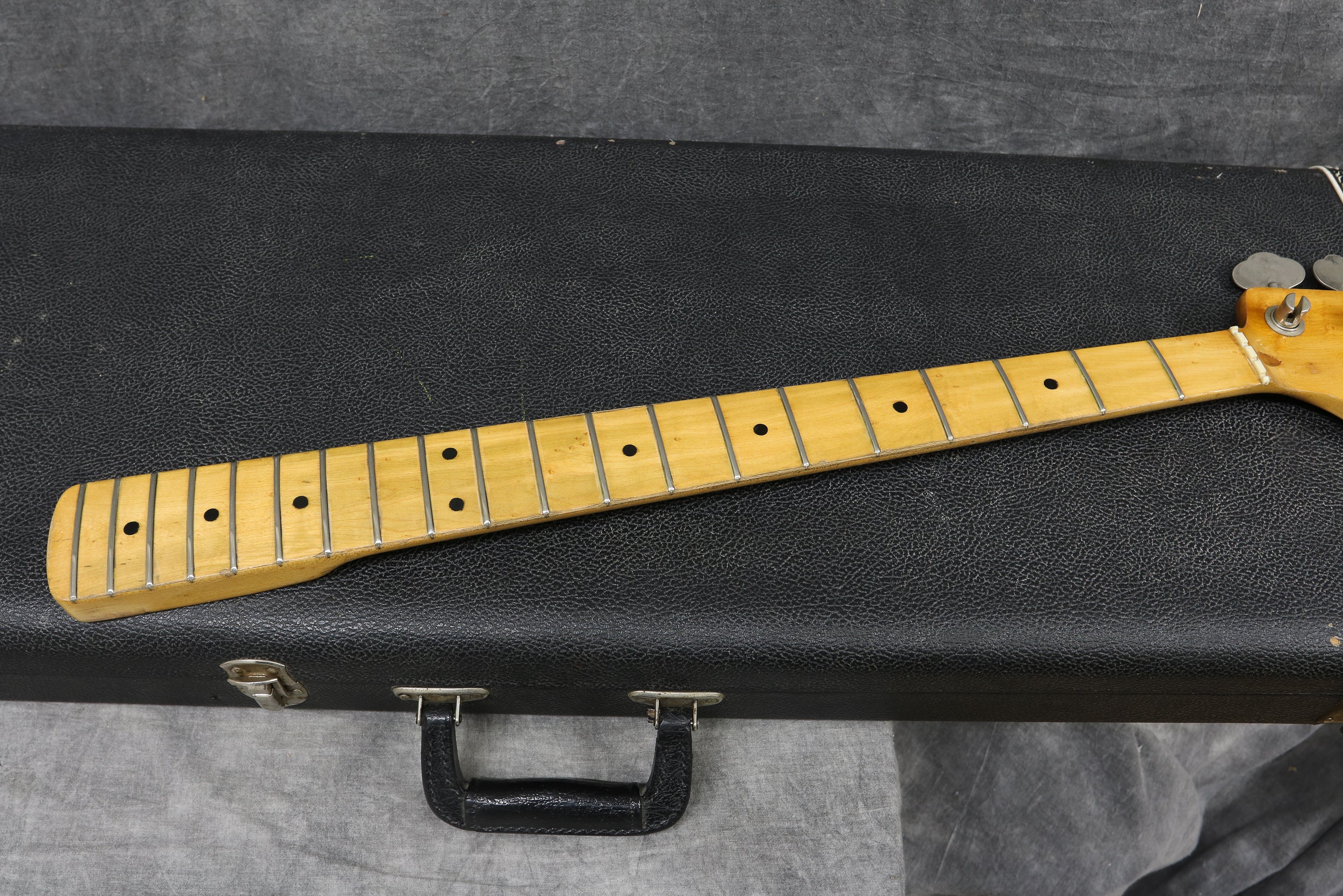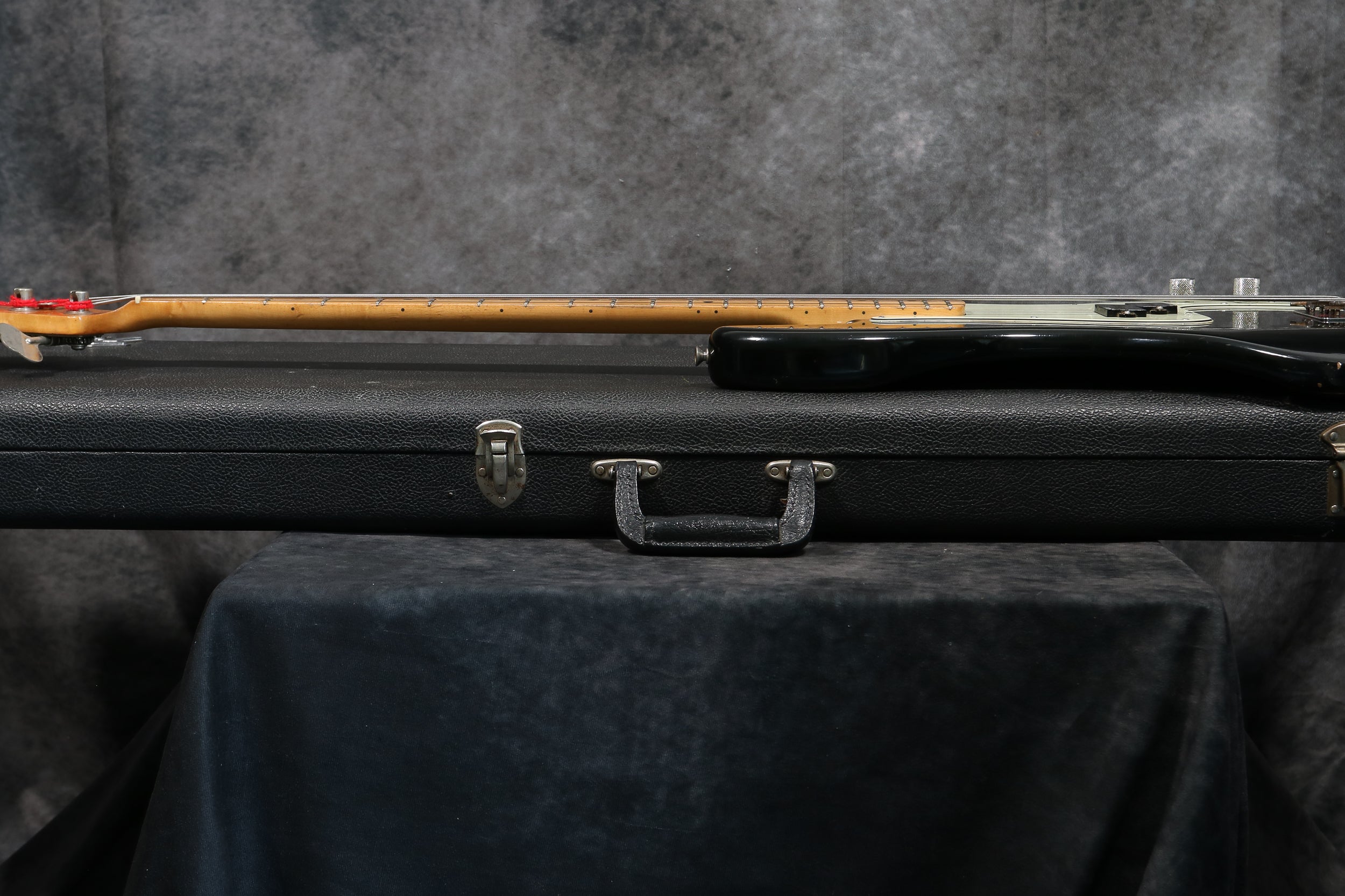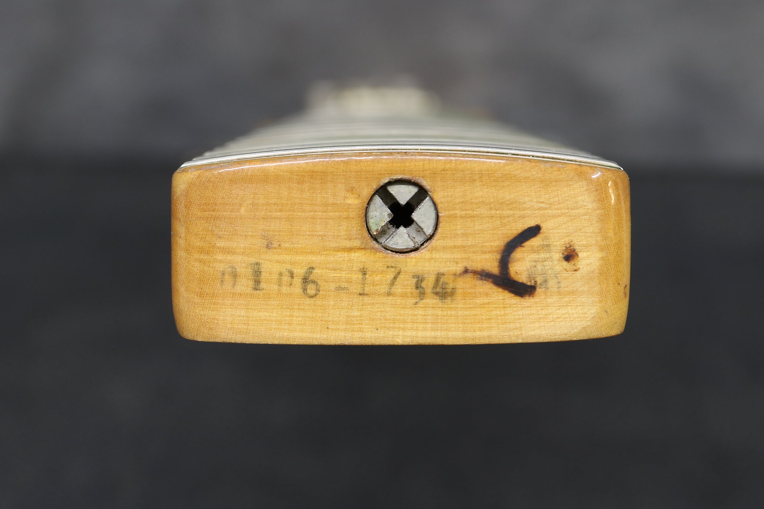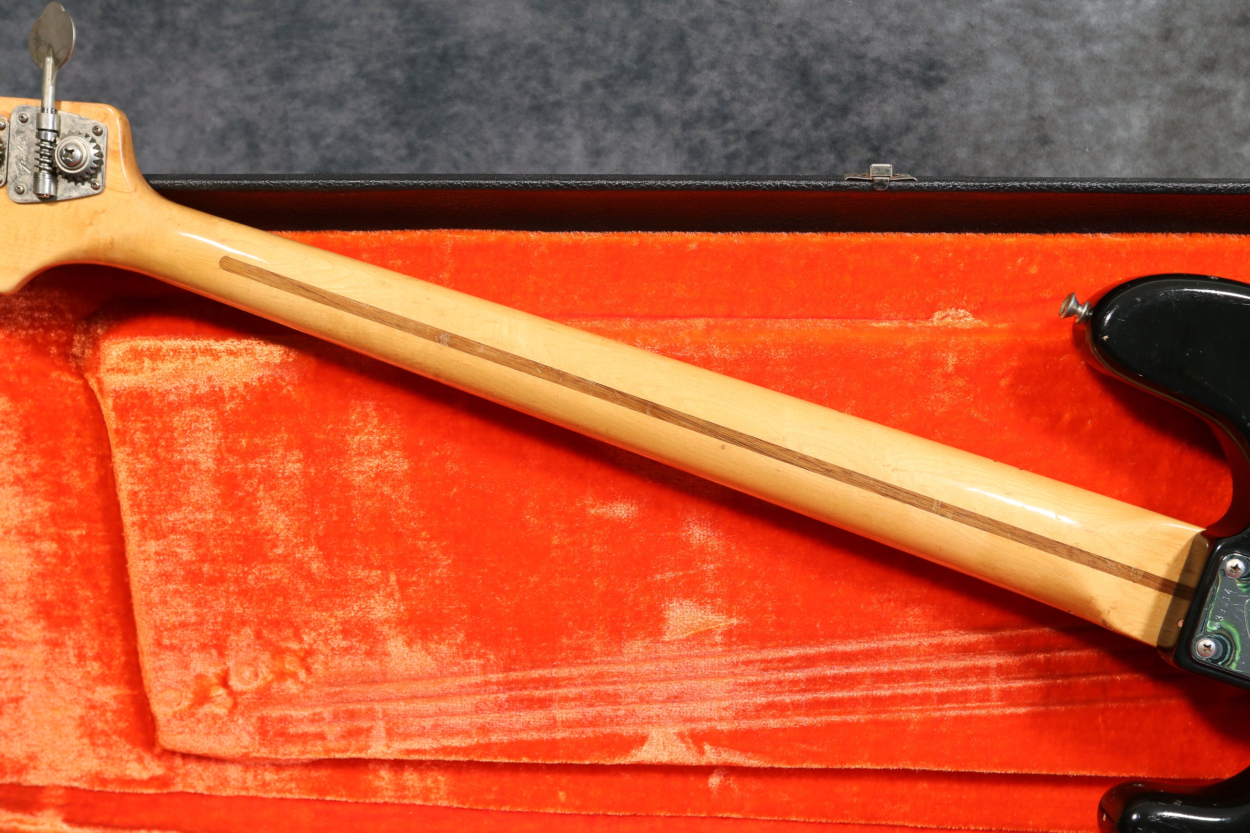 1974 Fender Precision Bass with an A-width neck. (37.8 mm at the nut). The bass is in very good condition. Changed guard and possibly changed nut. No thumb rest or metal covers. The case is from 1975 onwards. ( its possible it left the shop back in the day with this case, but impossible to know for sure) It's nice and light, weighing 9 lbs 1.5 oz / 4.12 kg.