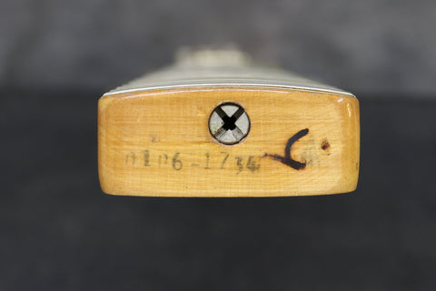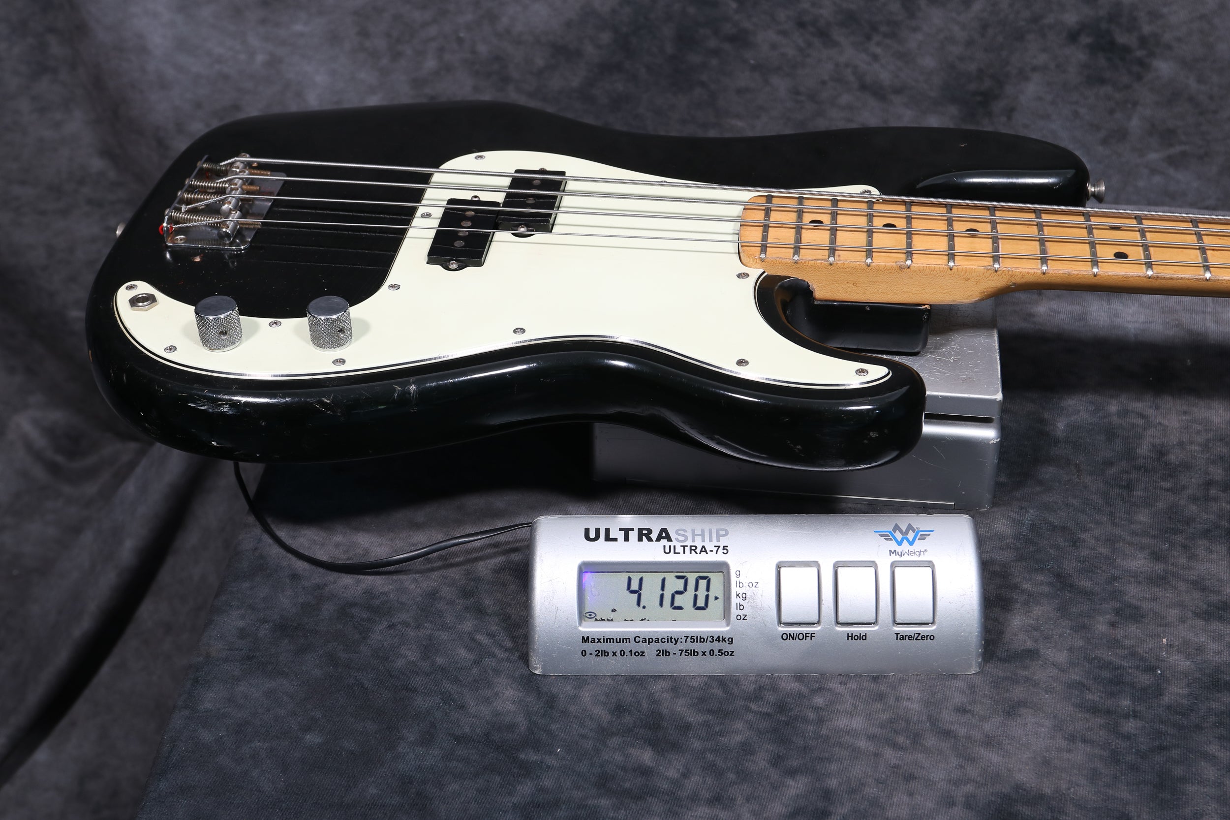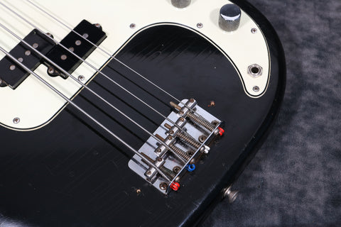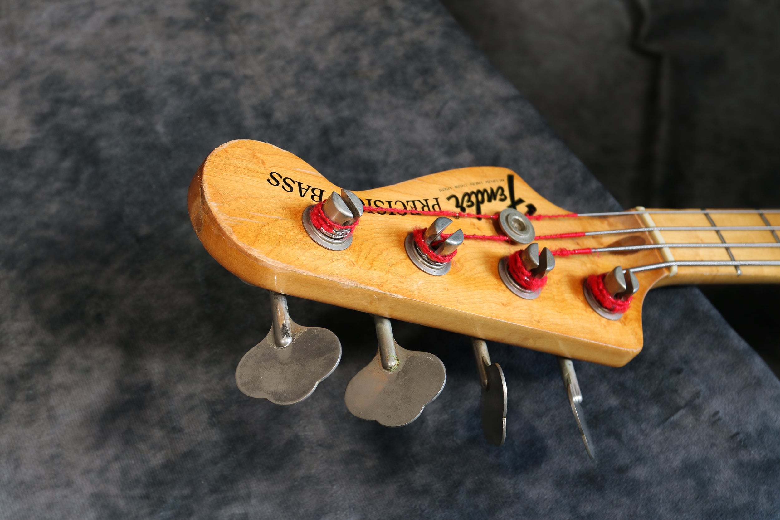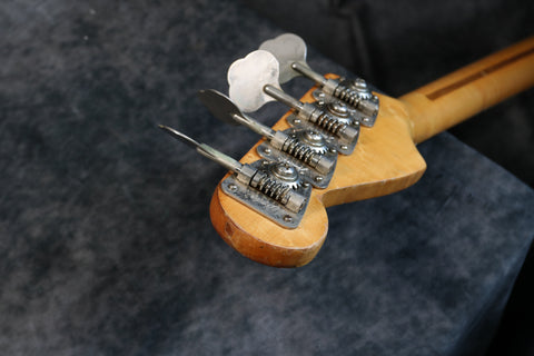 This is a great Fender P-Bass with a straight neck and original frets which are in excellent condition showing very little wear. The finish has a few small dings and scuffs, mainly around the edges of the body as well as some light lacquer checking. The headstock has a few small bumps and scrapes as well but everything remains structurally sound with no breaks or repairs. The neck is clean overall with just a couple of small bits of wear. All hardware and electronics are in good working order including the truss rod.