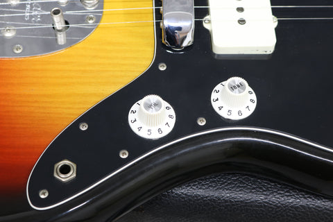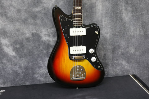 1976 Fender Jazzmaster with a Sunburst finish in near mint condition. All original and complete including the case. It has a beautiful rosewood fingerboard with pearl block inlays. The Jazzmaster was Launched in mid 1958 as the top of the range Fender guitar, and featured Fender’s first neck with a rosewood fretboard. It's an incredible Rock’n’Roll and Surf guitar and was a firm favourite of 90s bands like Nirvana, Sonic Youth and My Bloody Valentine.