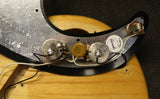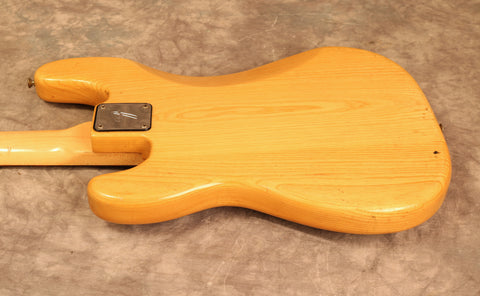 1976 Fender Precision Bass, Natural finish, Rosewood fingerboard. It's missing the metal pickup and bridge covers and it has a Fender replacement pickguard. There are 2 extra holes in the body where a previous owner must had repositioned the thumb rest. The pots date to the 25th week of 76. The pickups date to 76.