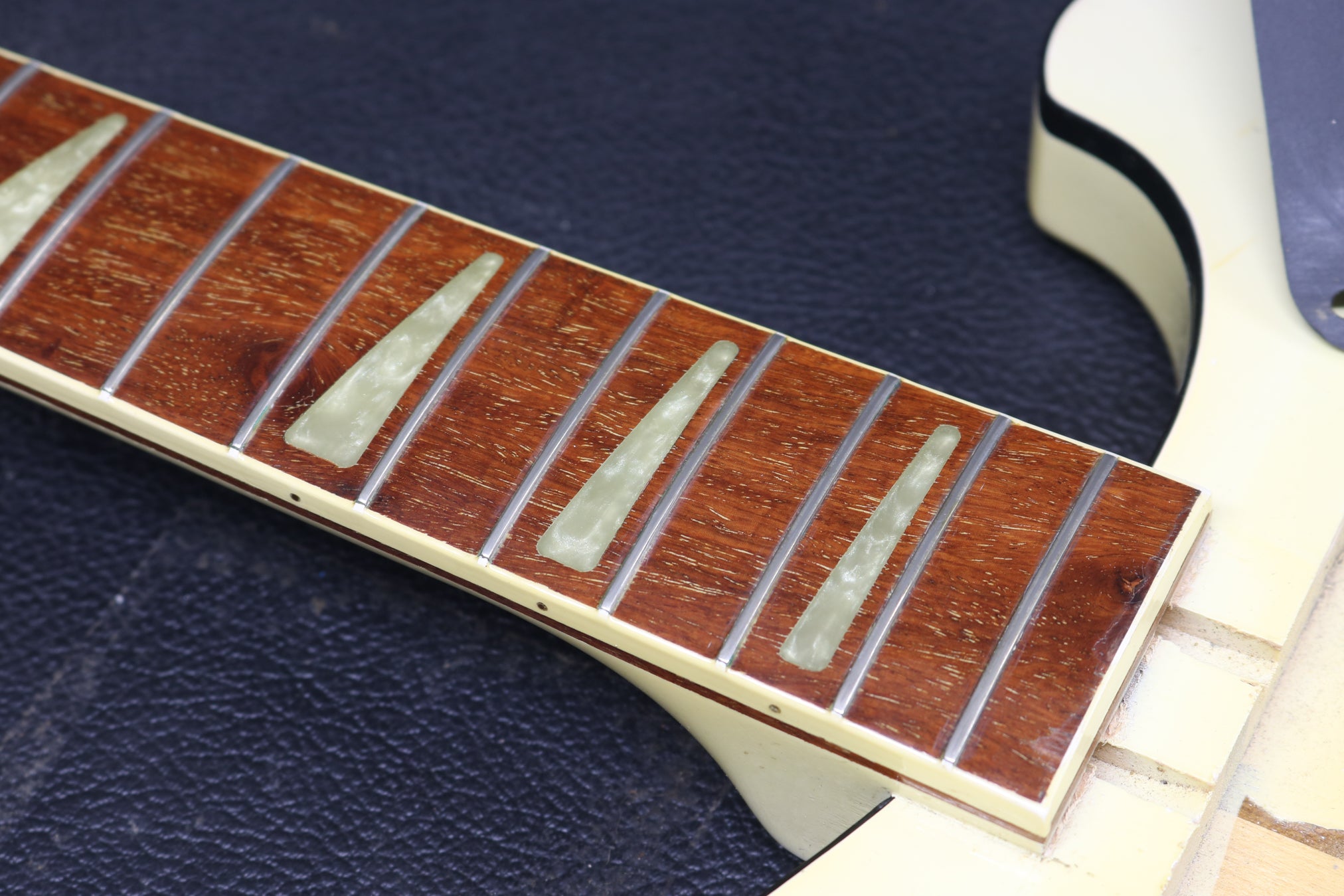 Fully set up in our workshop with a set of black tape-wound strings (Inspired by watching Get Back) and a low playing action. The frets are in great shape showing and have been clean and polished. All electronics and hardware are in good working order with no issues. The Pickups, pots and hardware are all original. The pots date to early-76. Weight 9 lbs 2.5 oz. Nut width 41.2mm. Depth at 1st fret 23.1mm. Supplied with a 3-month warranty.