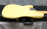 1977 Fender Precision Bass in excellent condition. Olympic White finish with a black pickguard and a maple fingerboard. Original Fender hard case included. It has original pots, pickups, hardware and frets. The only changes seem to be one of the strap buttons, the metal pickup cover and 2 extra holes that have since been filled and touched up from someone re-positioning the strap button. (one on the heel of the body and one on the tip of the lower horn)