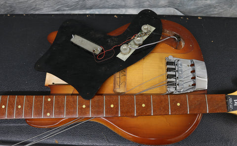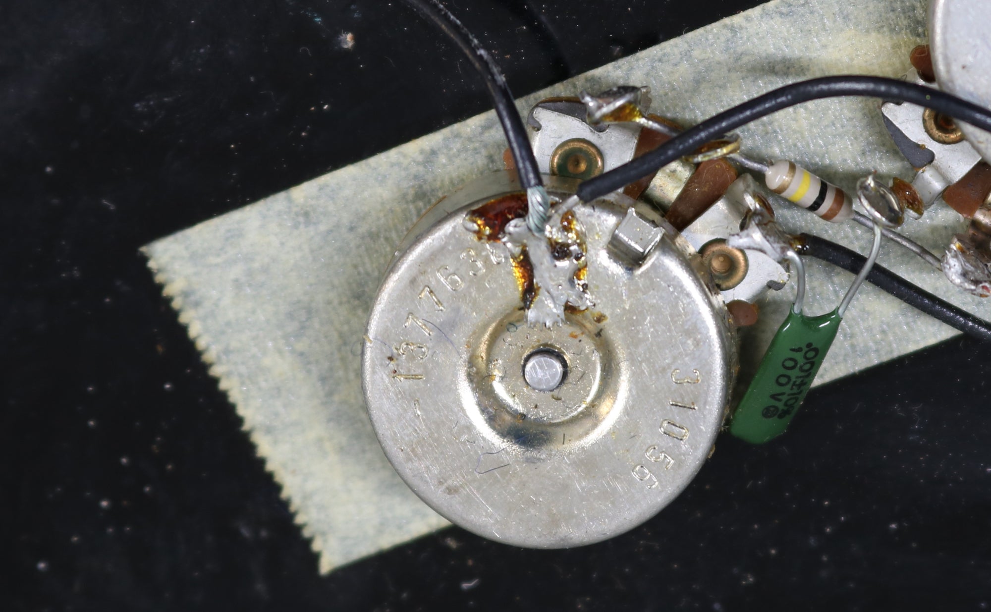 All hardware and electronics are in fine working order. The truss rods are fully functioning and the action has been set nice and low in our workshop with a set of round-wound strings. Serial QC 2812. Weight 10lbs 7oz. Nut width 42.55 mm. Depth at 1st fret 23.75 mm. The pots all date to late 76. The serial number dates final assembly to March 77.