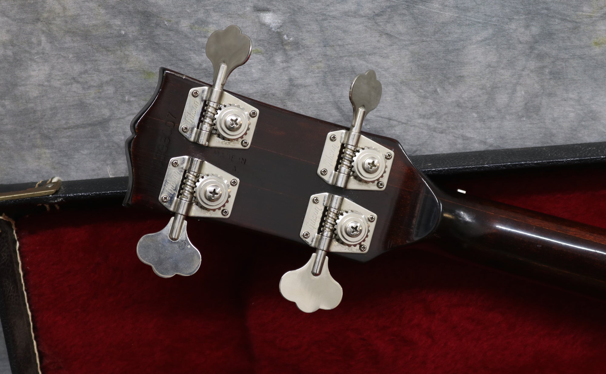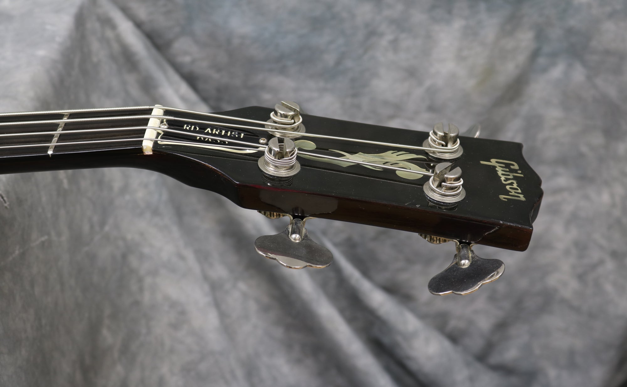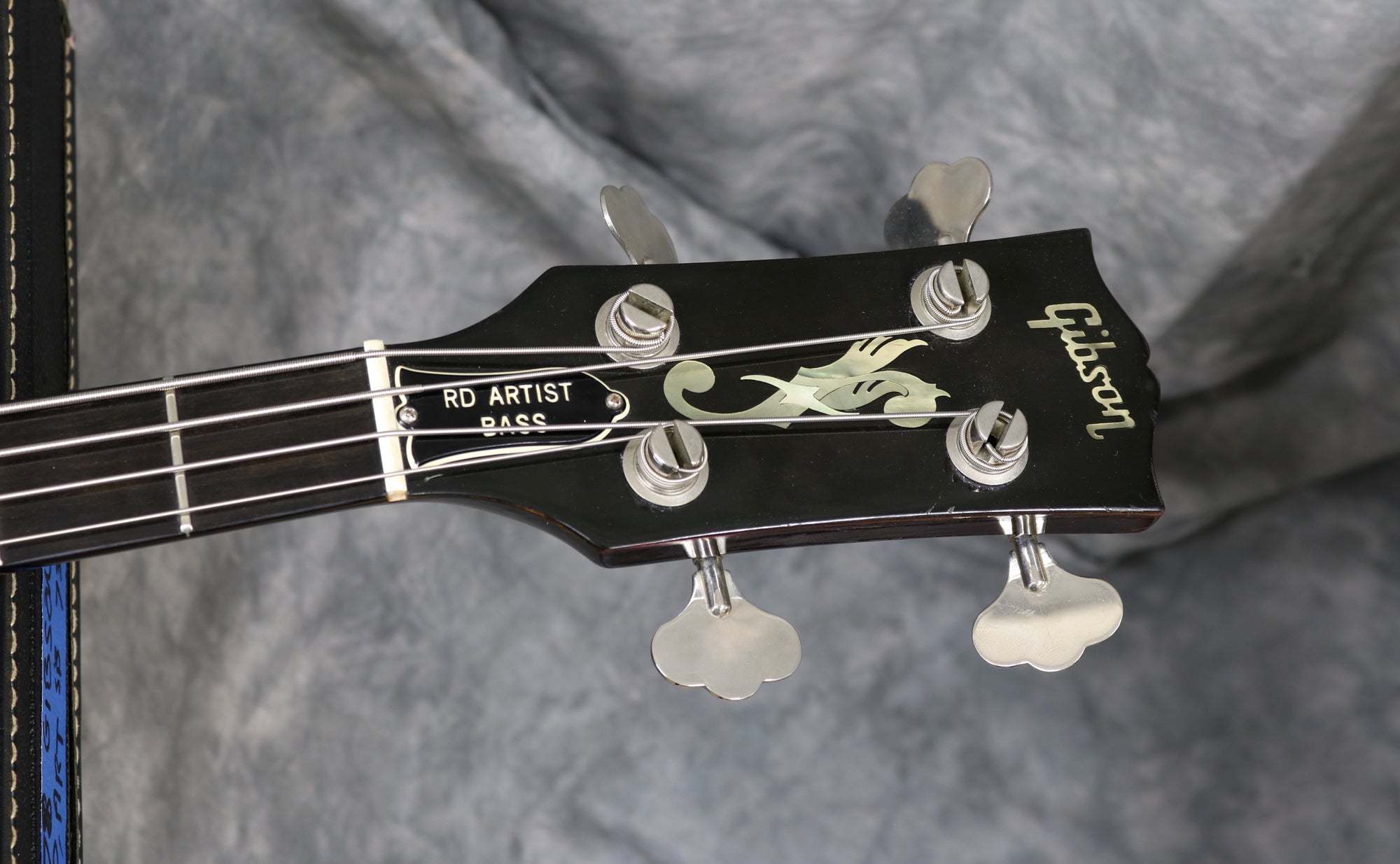 1978 Gibson RD Artist Bass in exceptionally clean condition. Sunburst finish, Ebony fretboard, serial 73338001. The original Moog circuitry and pots are untouched. With the exception of the nut, this bass is all original including the case, which is also in great condition. Fully set up in our workshop with a fresh set of Rotosound round-wound strings. It's lighter than most other RD Artist Basses we've had weighing 10 lbs 15.5 oz. (Most are well over 11lbs) It's also slimmer at the nut than most RD Artists we've had measuring 41.2mm. The depth at the 1st fret is 21.75mm. This guitar was made at the Kalamazoo Plant, MI, USA, January 4th, 1978. Production Number: 73.