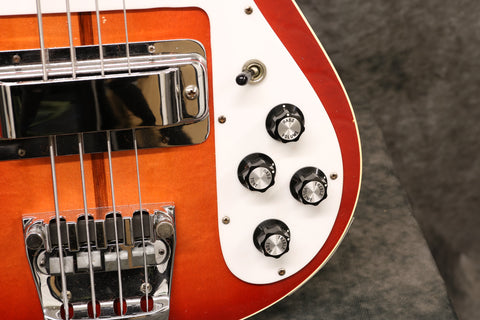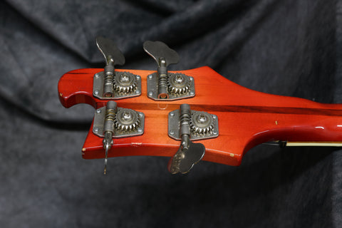 1978 Rickenbacker 4001 with a Fireglo finish in very good + condition. All original including the hard case. Serial RK 6778. It plays and sounds great and the action is low. The finish on the body is in excellent condition. There are a few finish scuffs and dings on the top edge of the headstock and a couple on the back of the neck. It comes with the original hardshell case which is in great condition with all latches and hinges working. All-round lovely bass.