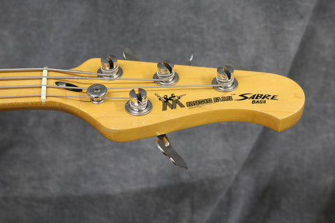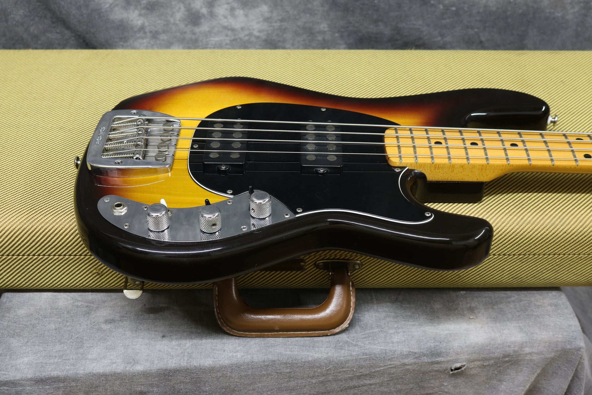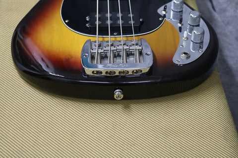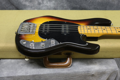 1979 Music Man Sabre bass in exceptionally good condition. Sunburst finish with a maple neck & fretboard. Black pickguard, 2 band EQ, Contoured body, 2 humbucking pickups, internal micro powered pre amp, brightness + phase in/out and pick up selector switches. Other than the case and the missing mute sponge its all original and complete. Supplied in a Fender tweed reissue case. It comes with 3-months warranty and a 7-day returns policy.