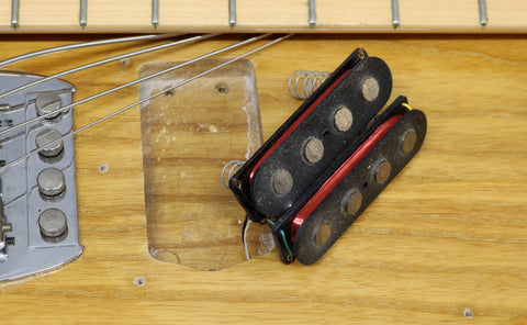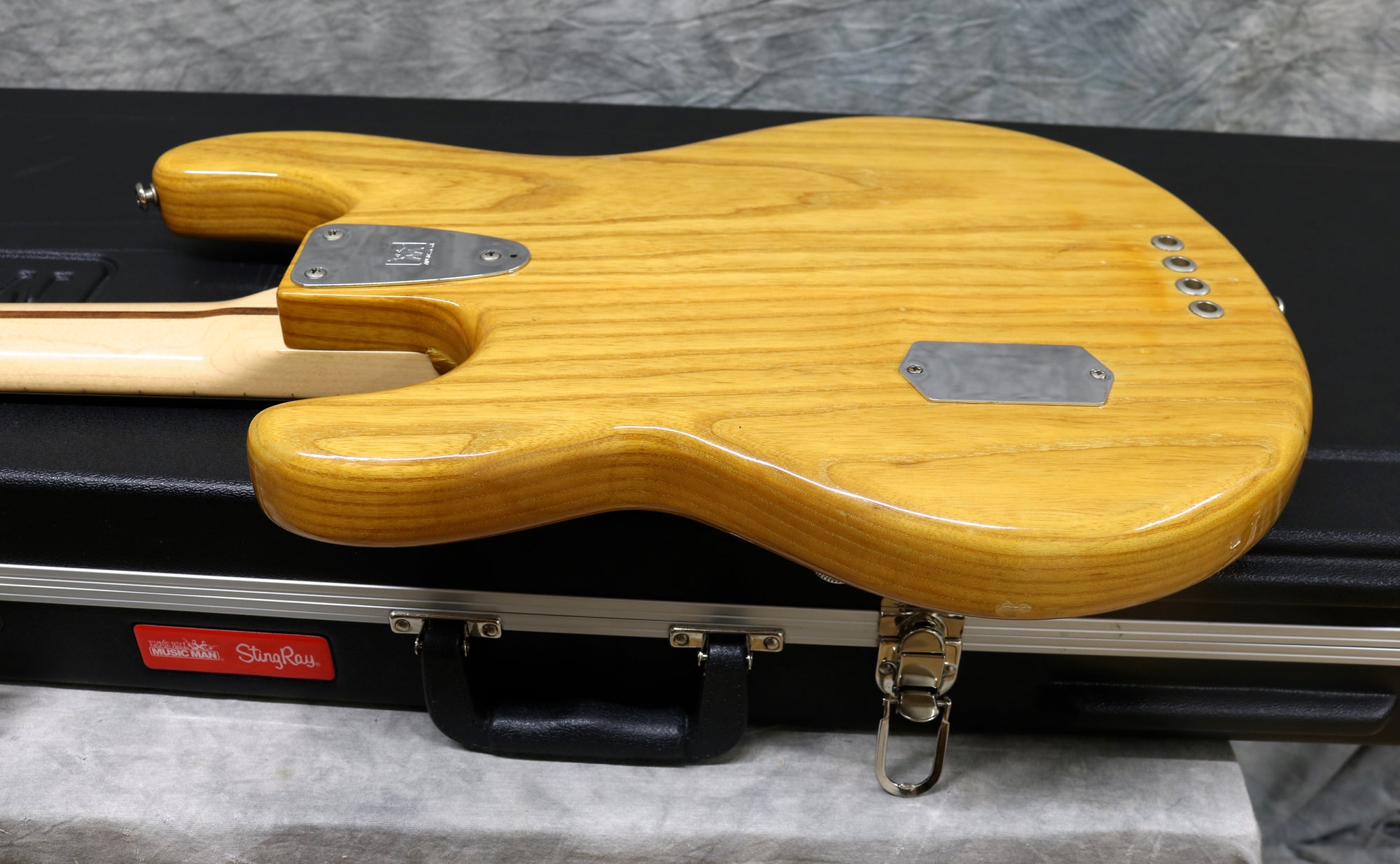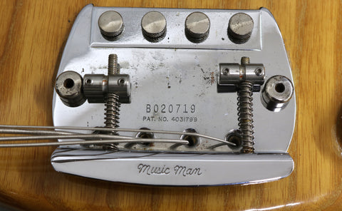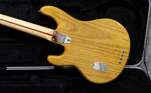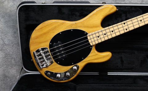 1980 Music Man Stingray in excellent condition. Natural finish, black pickguard, maple neck & fretboard. Equipped with a 2 band EQ, non-epoxy coated preamp and through-body stringing. The string mute mechanism is missing and the jack socket has been changed. Supplied in a modern Music Man hard case. The bridge saddles have been changed. Otherwise all original.