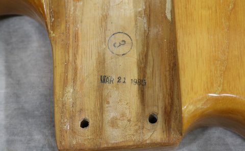 The serial number is B020719. Weight: 11 lbs 2.5 oz. The body is stamped Mar 21, 1980. There is no visible neck date. The pots all date to late 78 or early 79. The truss rod works as intended with plenty of room to move. Nut Width: 42.25 mm. Depth at 1st fret 21.3mm.