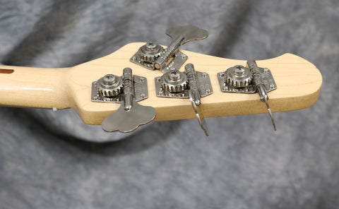 There's a chip in the lacquer on the edge of the body just below the jack socket but other than that the finish has very few signs of play wear with only a few small scuffs and dings. The back of the neck, the fretboard and the headstock are all extremely clean. The neck is straight and plays smoothly. The original frets have minimal wear and have been cleaned and polished in our workshop. This is an all-round excellent bass, the sound is warm and punchy. It's been fully set up in our workshop with a fresh set of round-wound strings and has a great action allowing for superb playability up and down the neck.