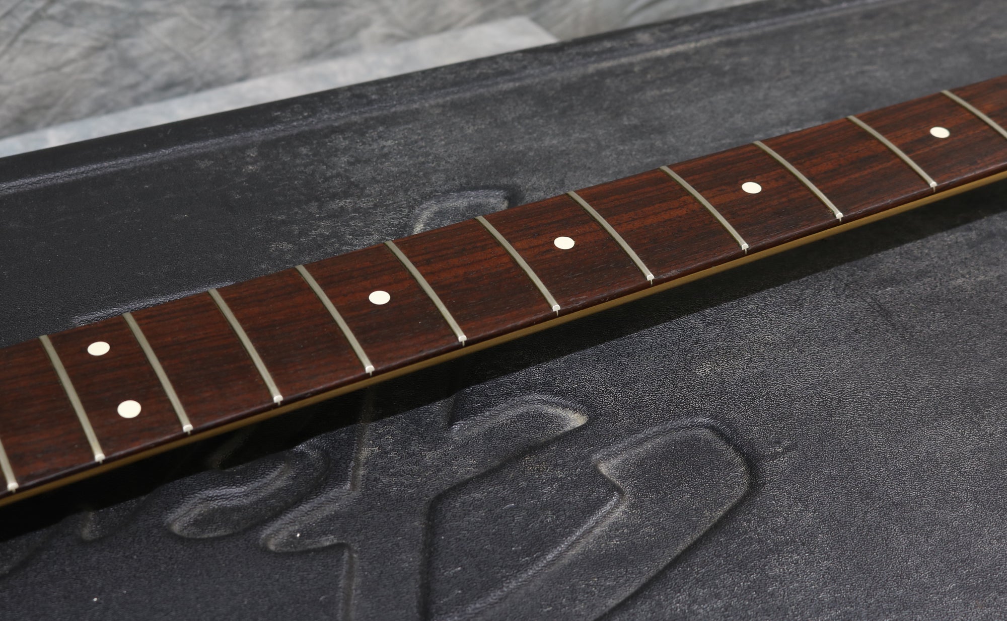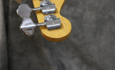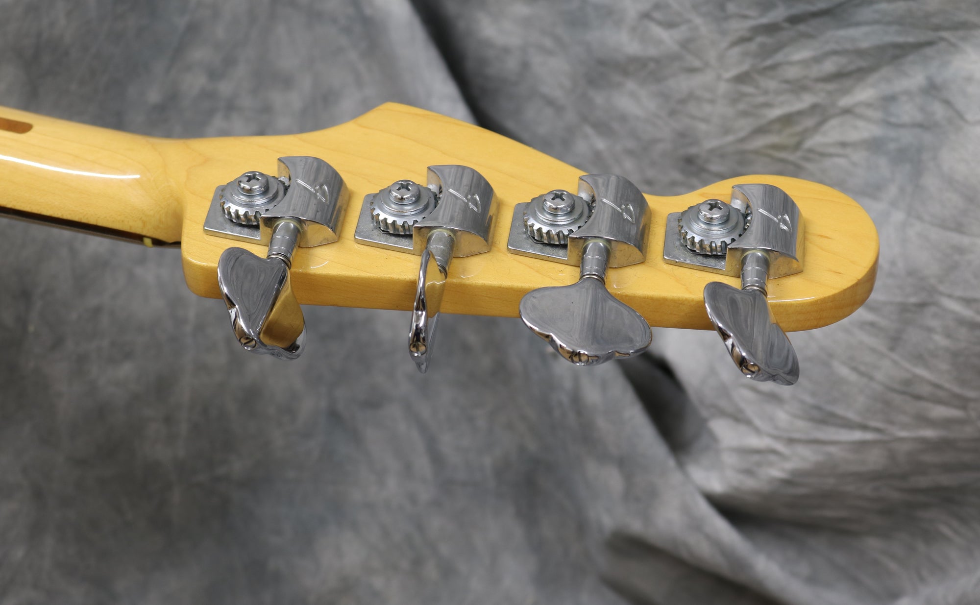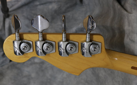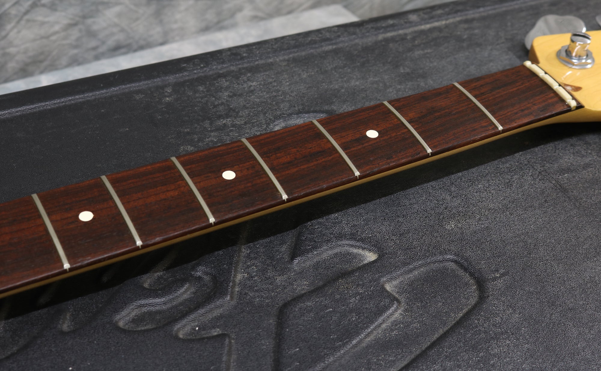 This is a great Fender bass with a straight neck and original frets which are in excellent condition showing virtual no wear. There are a few small scuffs and a small ding in the finish by the output jack but overall it's extremely clean. The neck and headstock are equally as clean.