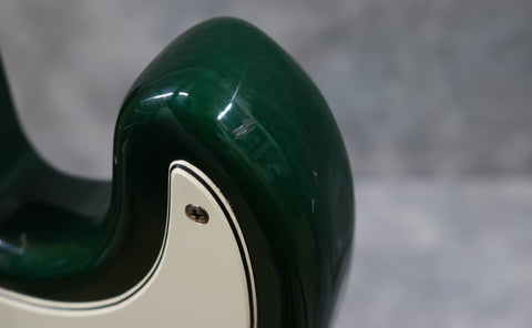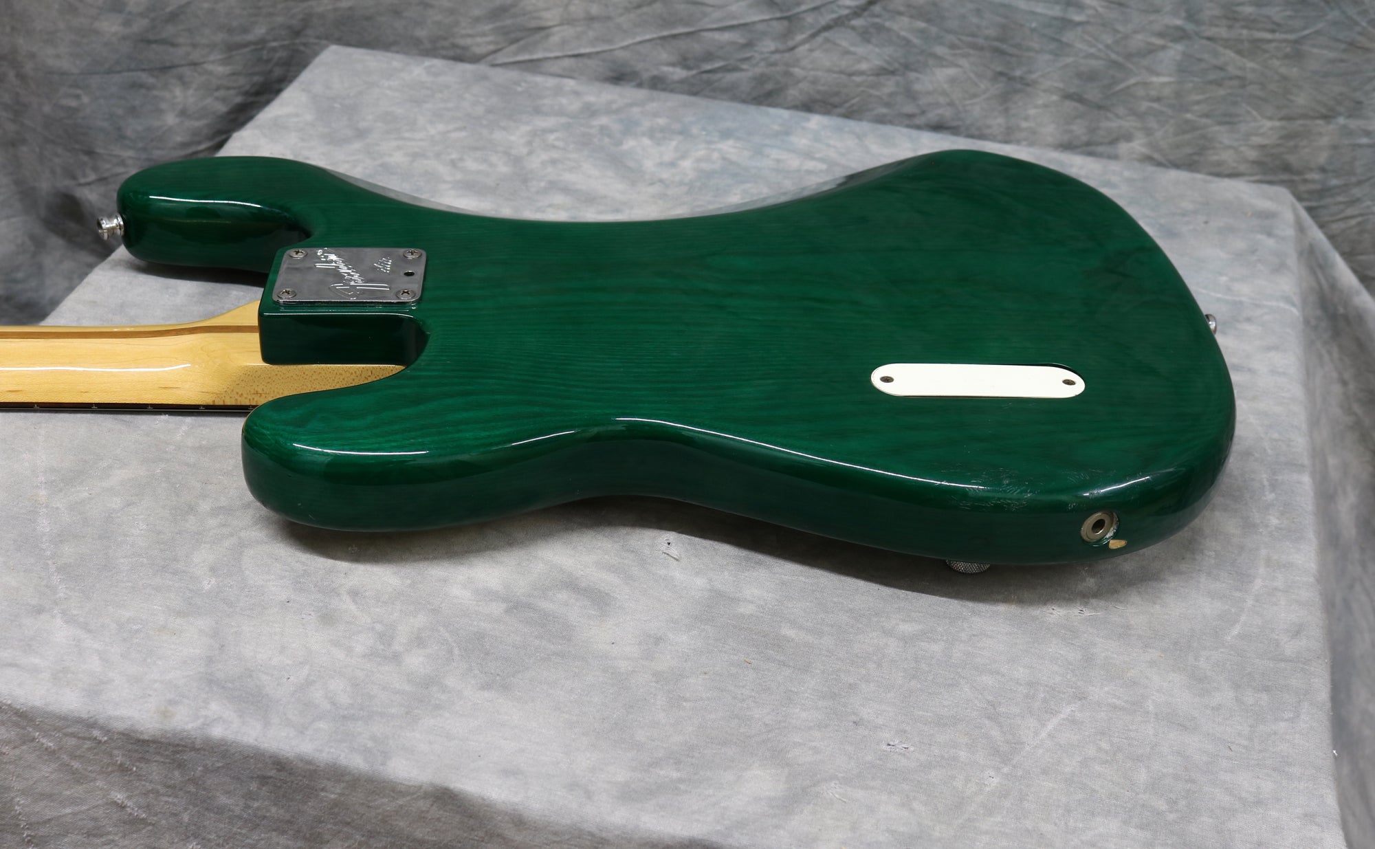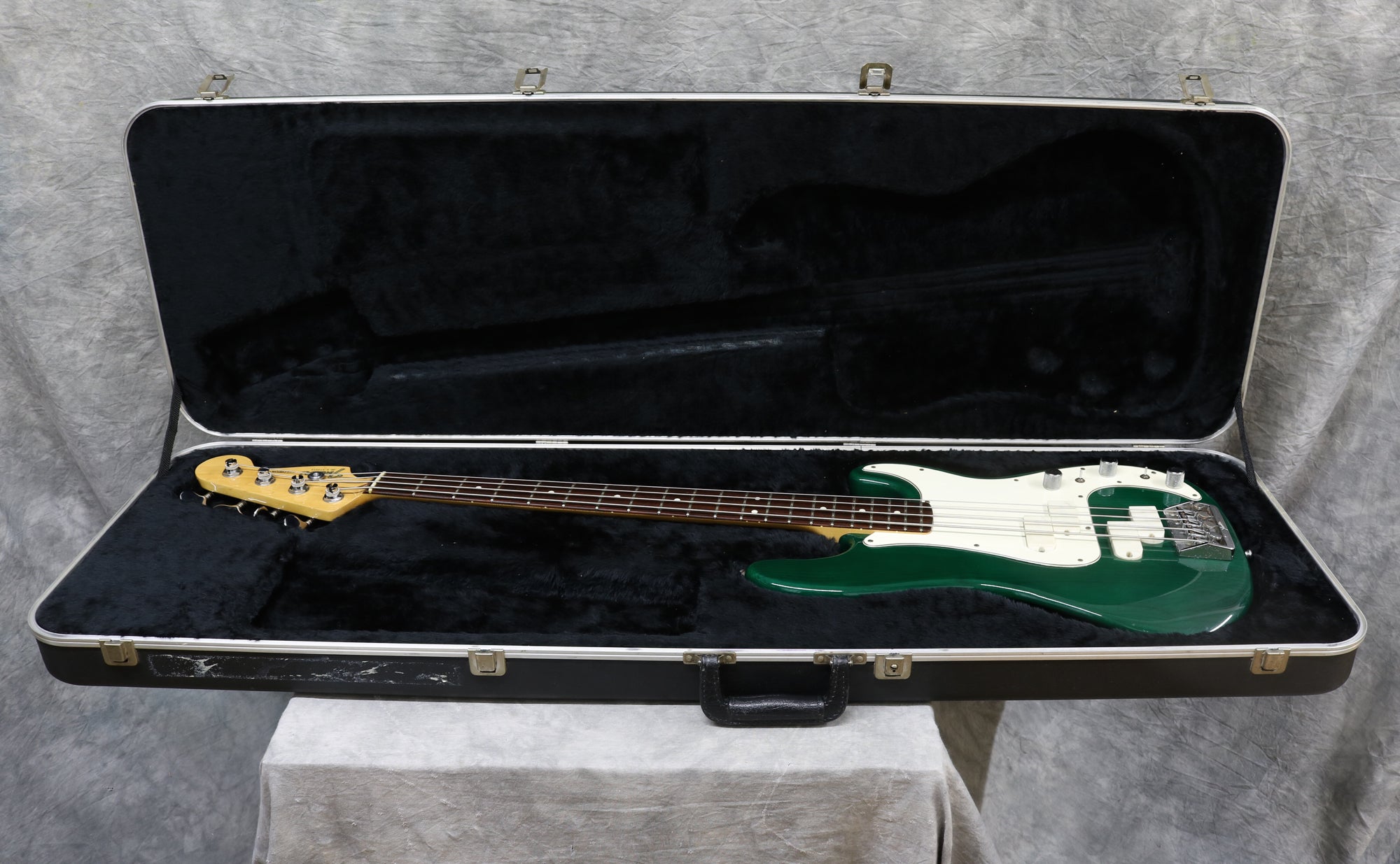 1983 Fender Elite Precision Bass II in excellent condition. It has a rare Emerald Green finish and is supplied with the original Fender hard case. Aside from changed control knobs and some solder, it's all original. It has a wide C profile Maple neck with a beautiful rosewood fingerboard which has a 7.25" radius. Although the neck is wide from side to side, it is slim front to back.