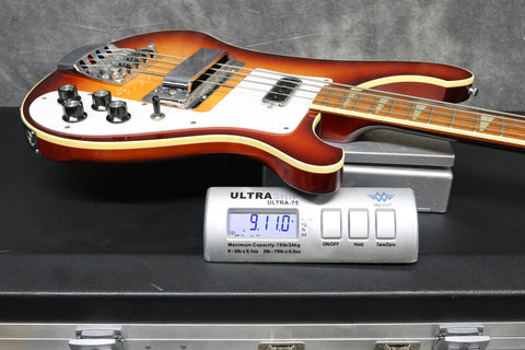 What's interesting about this bass is that it has factory fitted, wavy Grover tuners. By the end of 74 this type of Grover tuner was no longer the standard tuner used on Rick 4001 basses. Presumably this bass was custom ordered this way by either a shop or a customer.