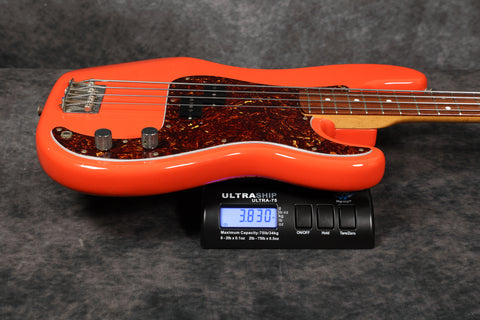 There are some very small scuffs in the finish around the edges of the body and at the tip, but nothing major. The neck is straight and clean, as is the headstock. The frets are in great shape. All electronics and hardware are in good working order. This bass has a big round and warm sound in keeping with the vintage vibe. If your budget doesn't stretch to a pre-CBS Fender, then these Japanese-made reissues are an excellent alternative. This bass has been fully set up with a fresh set of La Bella, Olinto flats.