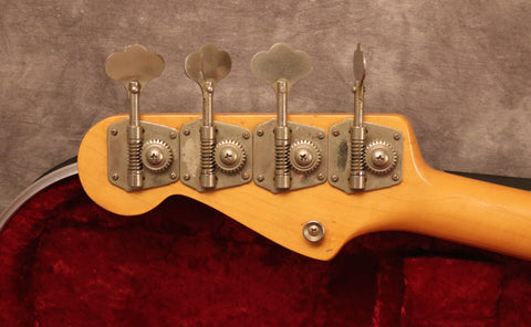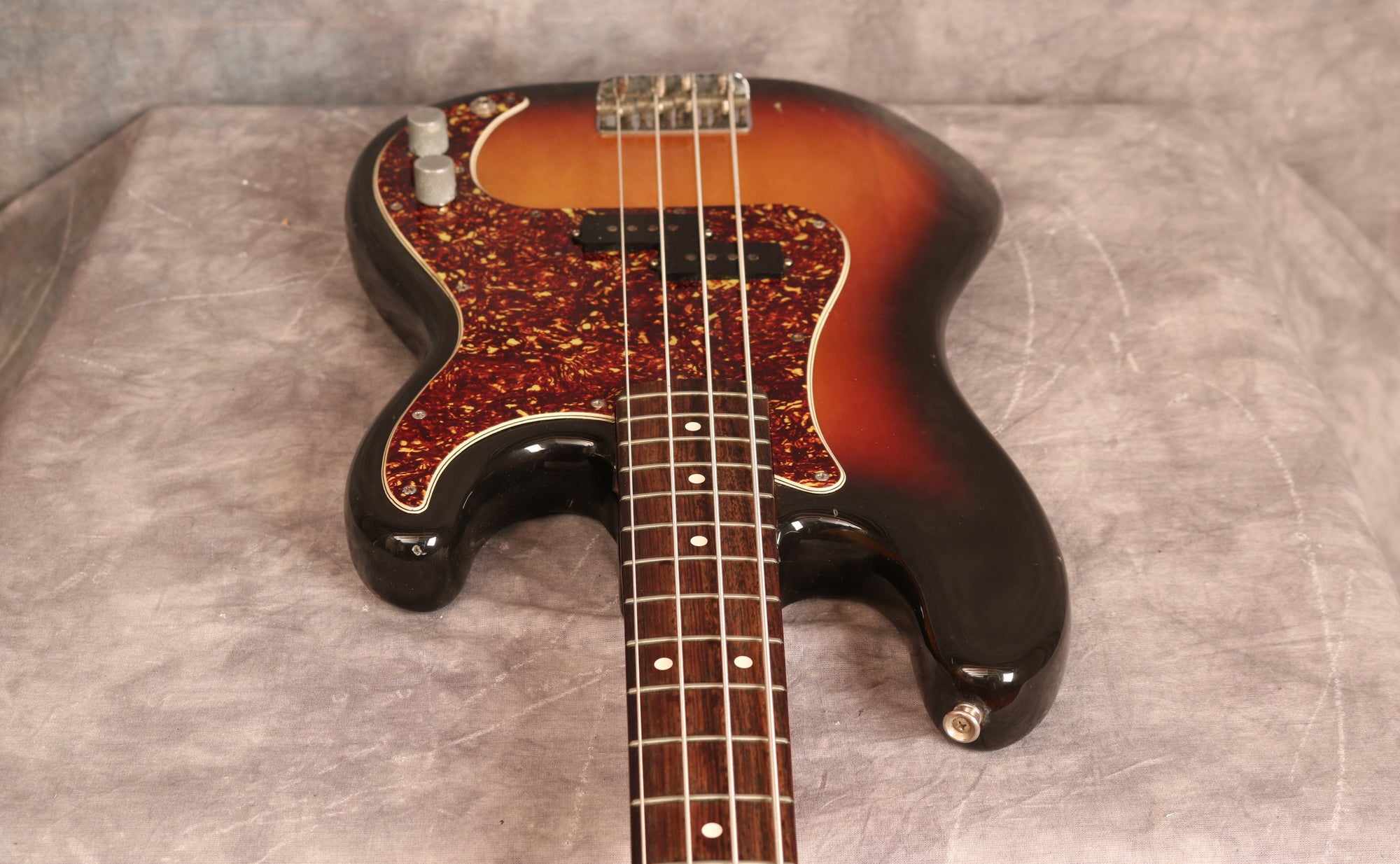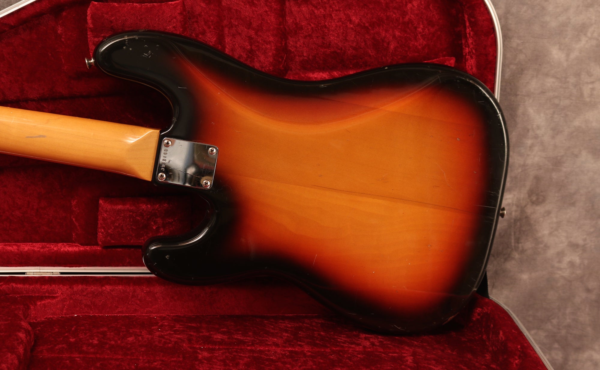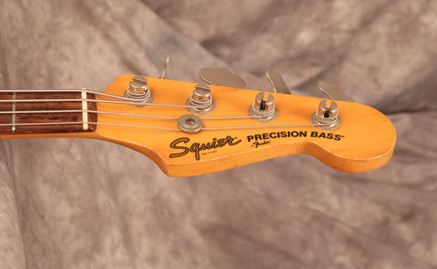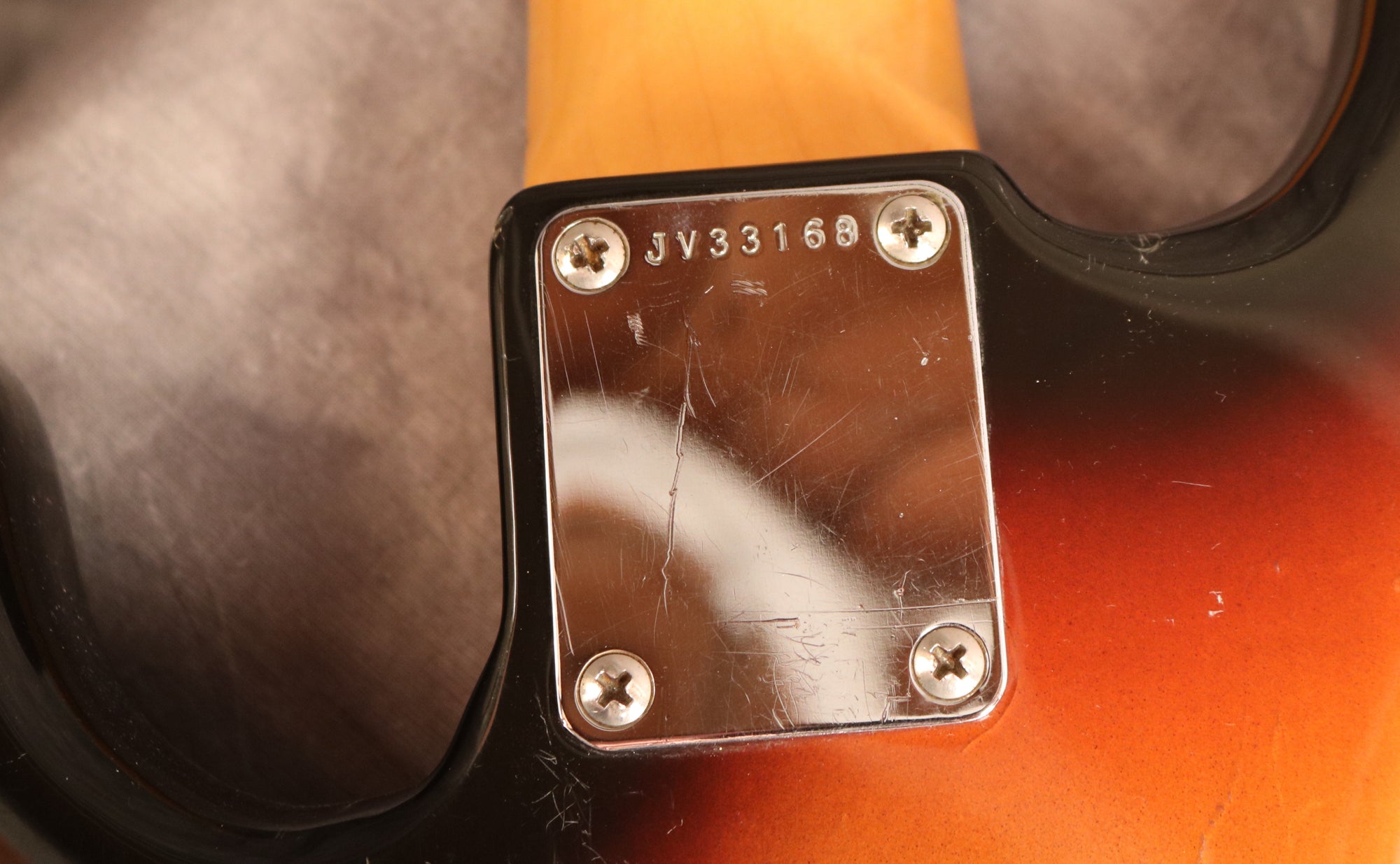 1983 Squier JV series, 62 reissue Precision bass. (Export model) The neck is dated 29th January 1983, making this only a year into the production of these Japanese Squiers. 3 tone Sunburst over an alder body, Maple neck and Rosewood fingerboard. All original. Hiscox hard case included. These export series JV basses had more in keeping with the original vintage basses than the Japanese domestic series - USA made pickups with cloth wires and vintage style reverse tuners.