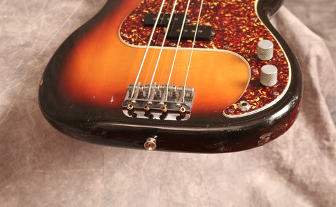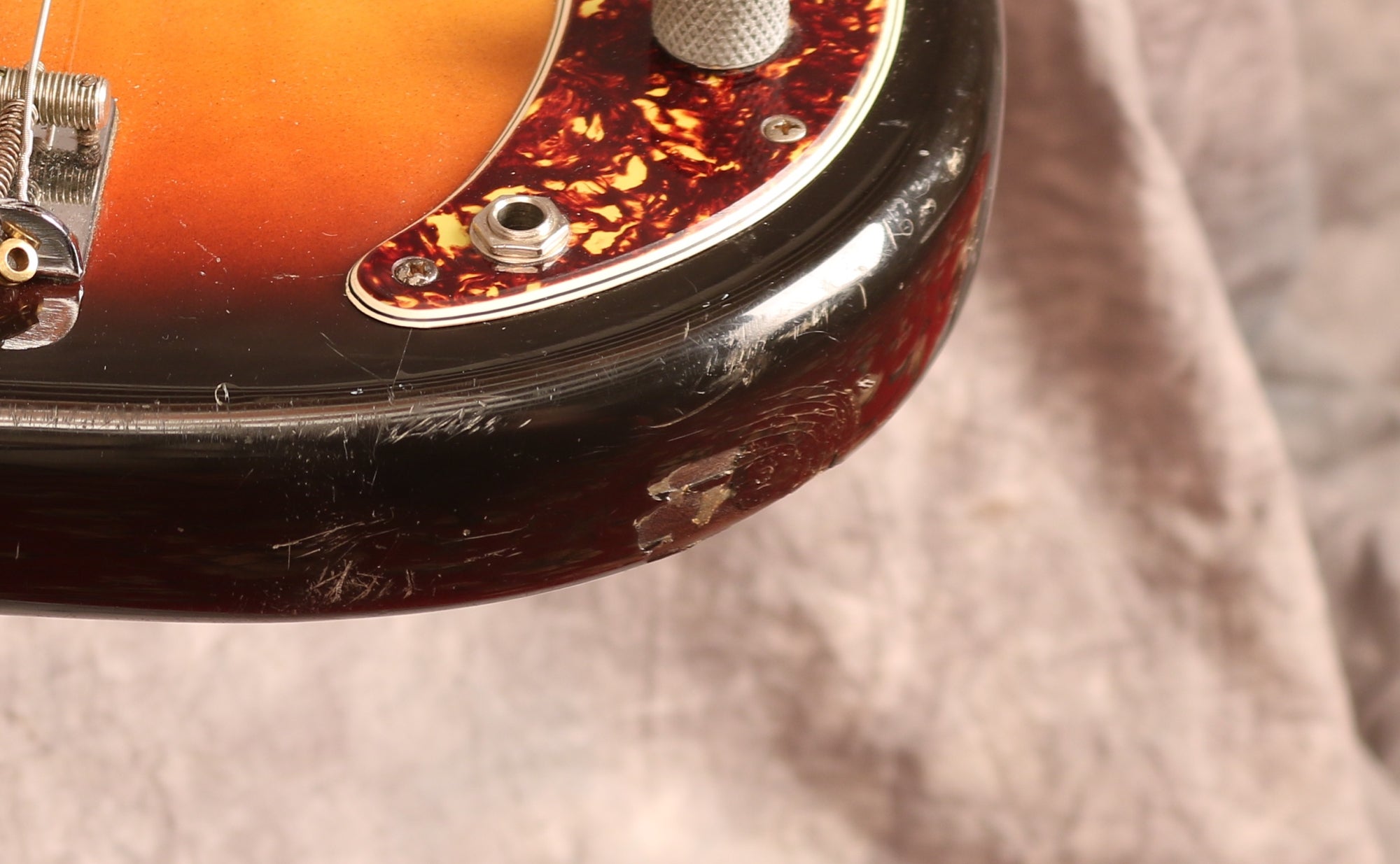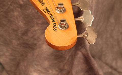 This bass is generally very clean but does have a few bumps and scrapes. Most notably a big bump at the butt end of the bass ( lower bout) where the lacquer has chipped away. ( see pics) The neck is straight and clean as is the headstock. The frets are in great shape. All electronics and hardware are in good working order. This bass has a big round and warm sound in keeping with the vintage vibe. If your budget doesn't stretch to a pre CBS Fender, then these Japanese made reissues are an excellent alternative. This bass has been fully set up with a smooth action by my technician. Weight:9 lbs. Serial: JV33168