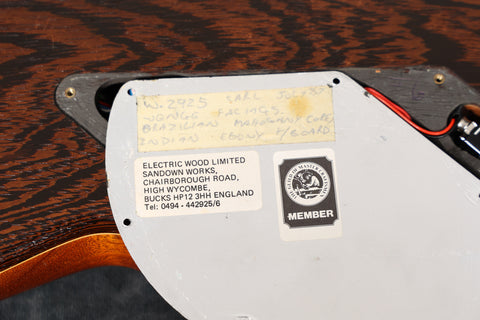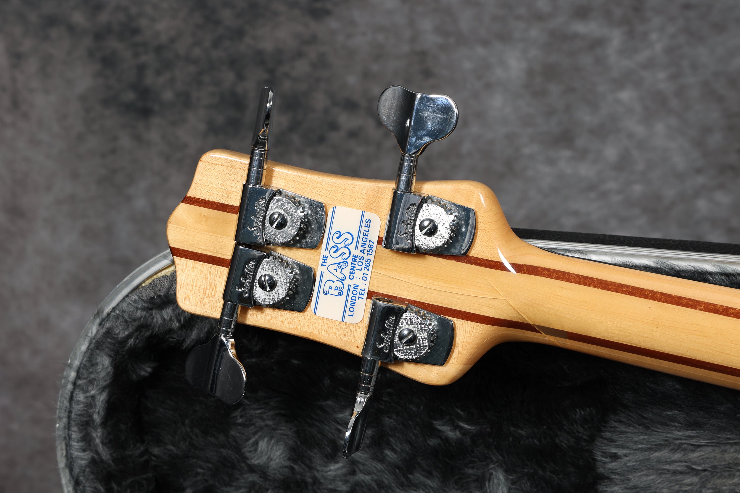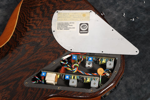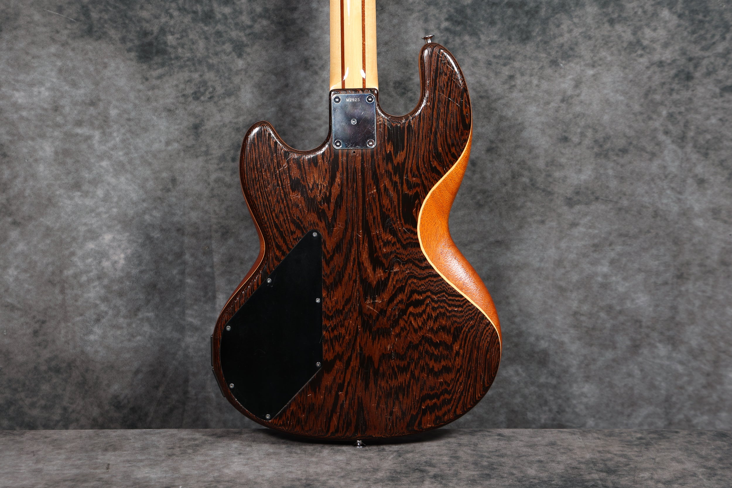 1987 Wal Custom MK1 Fretless in good condition. Mahogany core, wenge faces, Indian ebony fingerboard, Bass Centre logo'd Hiscox flight case. Serial number: W2925. Nut width:43mm. Weight 10 lbs 8 oz. 4.76 kg.