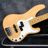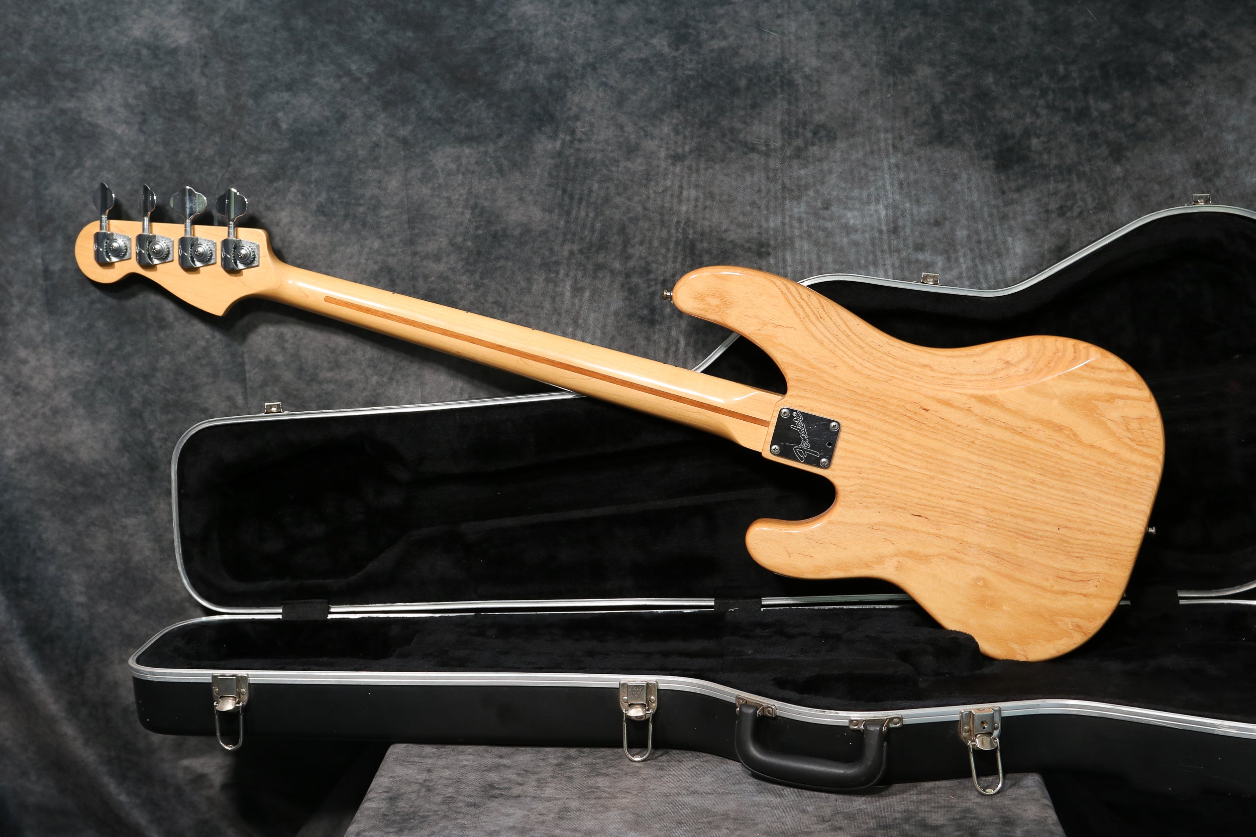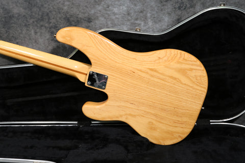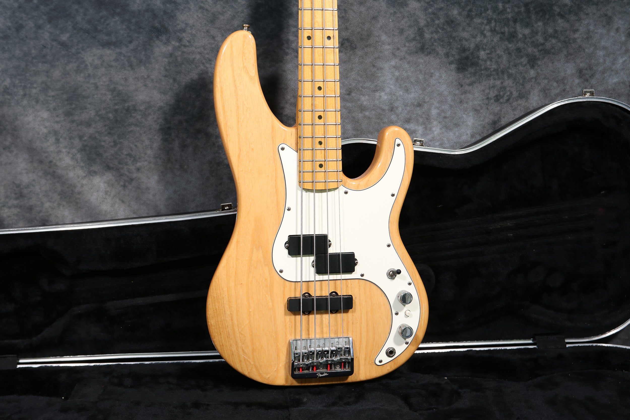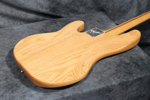 1992 Fender Precision Bass Plus with a natural finish in Excellent + condition. Ash body, Maple neck, 22-fret maple fingerboard and Lace Sensor pickups with a Series/Parallel switch and 3-way toggle pickup selector.