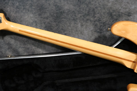 This is a great Fender bass with a straight neck and original frets which are in good condition showing very little wear. Overall this bass is very clean. The only imperfections I can find on this bass are a few patches of wear in the fretboard finish and one or two on the top edge of the headstock. The strap buttons have been changed and the bridge is missing the precision tuning adjustment screws. Otherwise, the bass is original including the case.