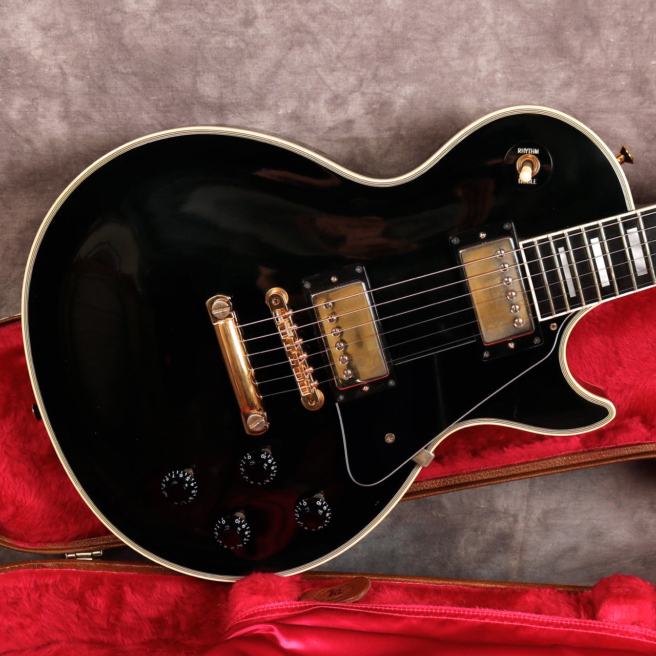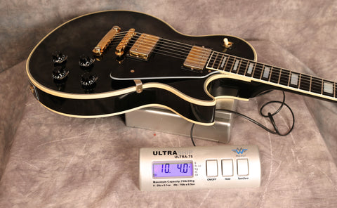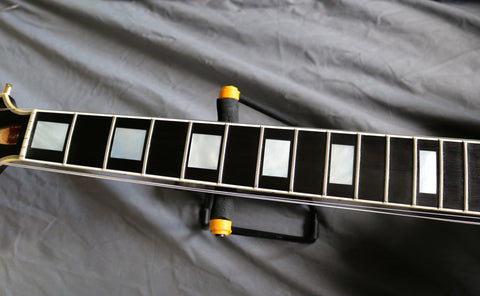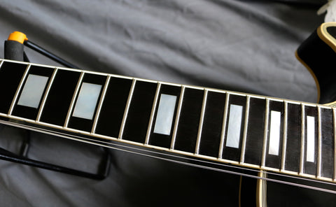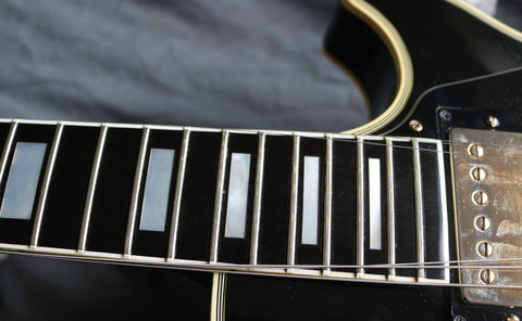 1992 Gibson Les Paul Custom 57 Black Beauty reissue, Black finish, Ebony fretboard with block inlays, gold hardware. Nashville factory-made, pre-Historic collection. Other than the strap buttons, this Guitar is all original including the case. It's in excellent condition with only light playwear. The frets have virtually no wear. The truss rod works correctly. Gibson customer services Europe recently confirmed this guitar has weight relief in the body.
