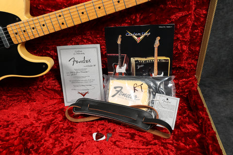 1998 Fender Custom Shop 1950s Nocaster Cunetto Relic. Butterscotch Blonde finish in excellent condition. It comes with the original vintage tweed case, the certificate of authenticity, and untouched case candy. Serial: R6767.