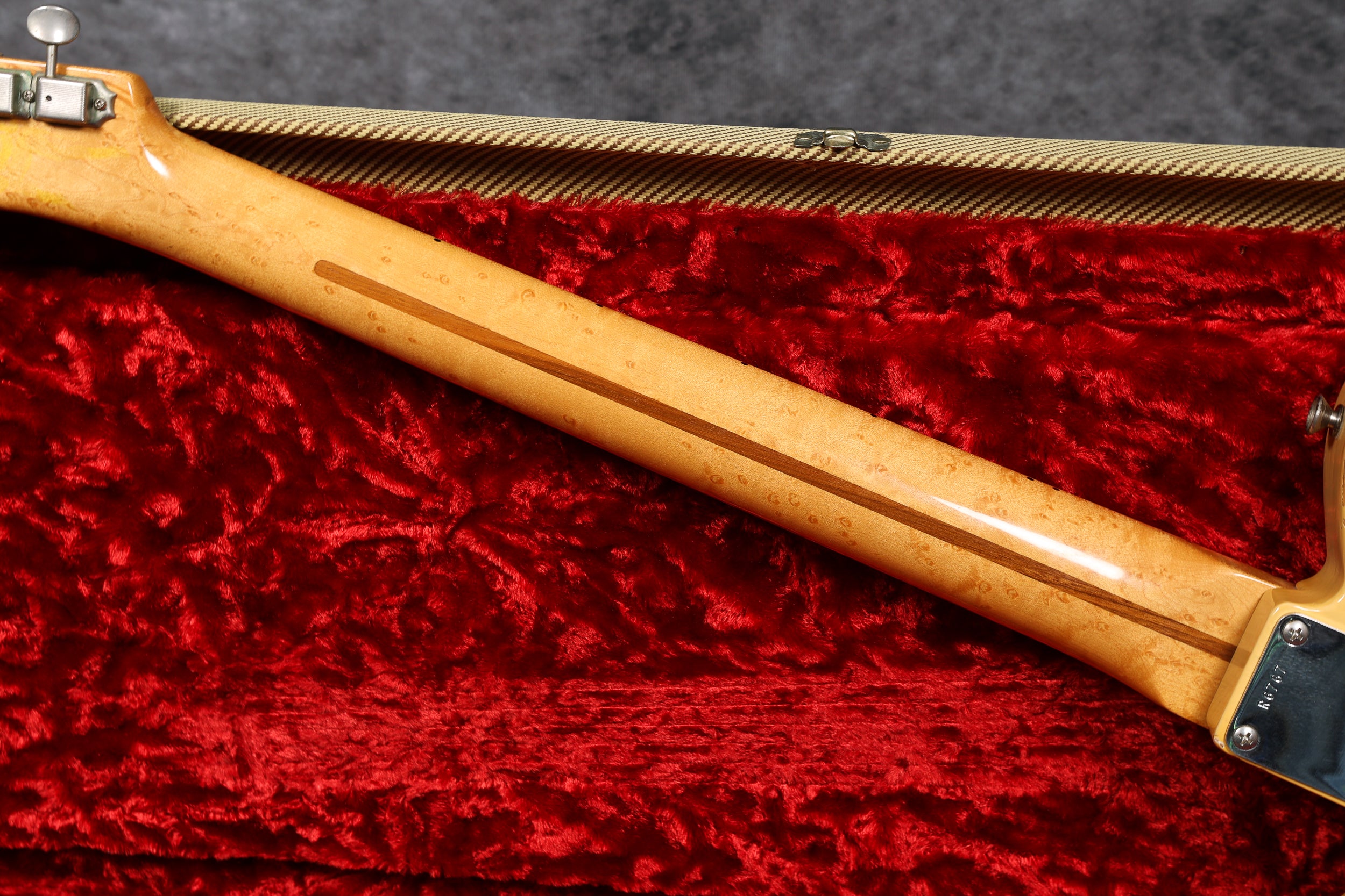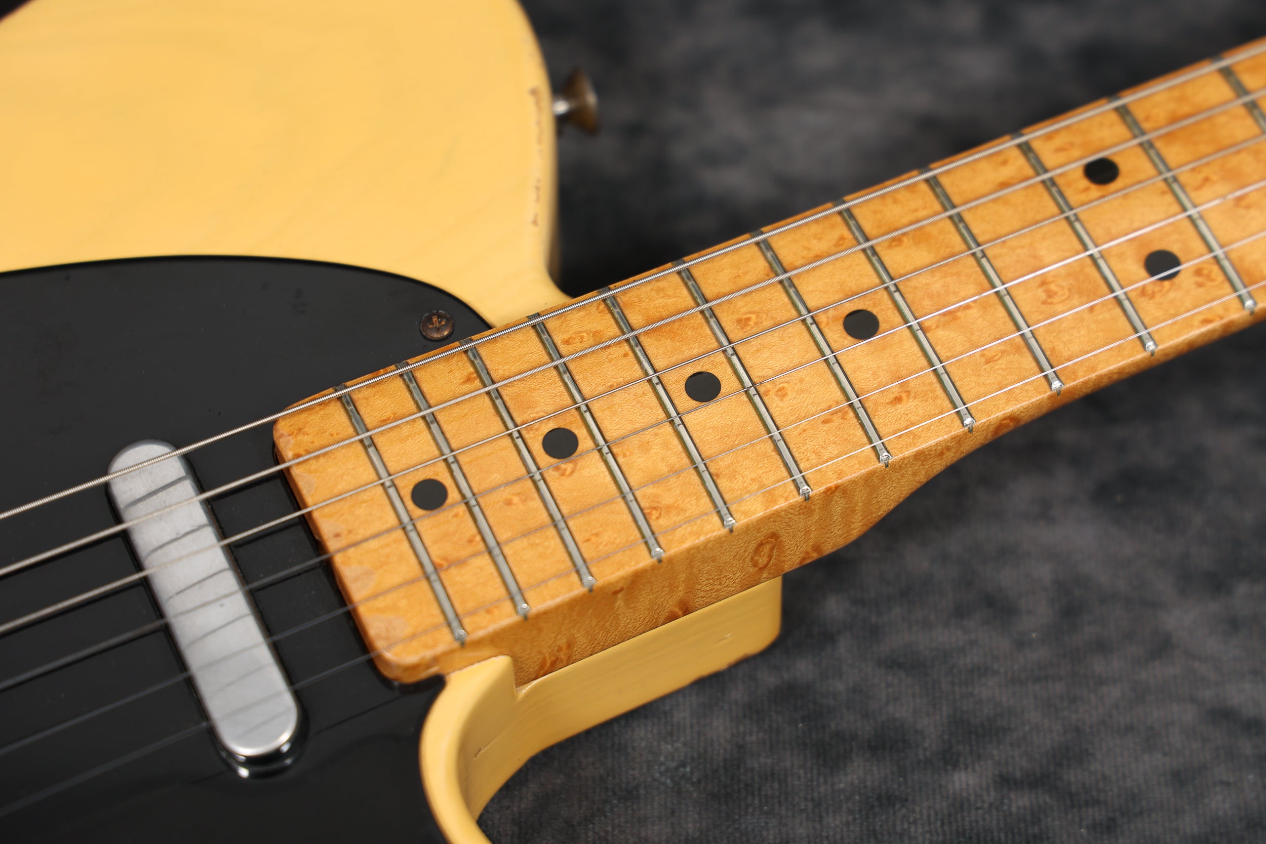 An elusive legend among Fender aficionados, the Nocaster has an interesting history. Originally called the “Broadcaster” during its initial production run in ’50, it was renamed after a request from The Gretsch Company, which offered a drum set named “Broadkaster”. As a cost-saving measure, Fender simply cut the name off the headstock label with scissors, leaving just the famous Fender logo until late ‘51 when they received their new name, Telecaster. The lack of a model name led to these guitars being christened “Nocasters” by collectors—very few were produced, and their sound and feel are legendary among players who know.