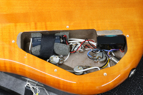 The extremely comfortable, fully carved body is crafted from carved European alder body and is topped off with a stunning flamed maple top.