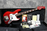 2010 Fender 50th anniversary Jazz Bass in Candy Apple Red. Excellent + condition, original case and all case candy. (except the vintage style cable). It's been fully set up in our workshop and has a lovely medium to low action. It weighs 9 lbs 11 oz, the serial number is Z9475925 . Nut width 38.5 mm, depth at 1st fret 21 mm.