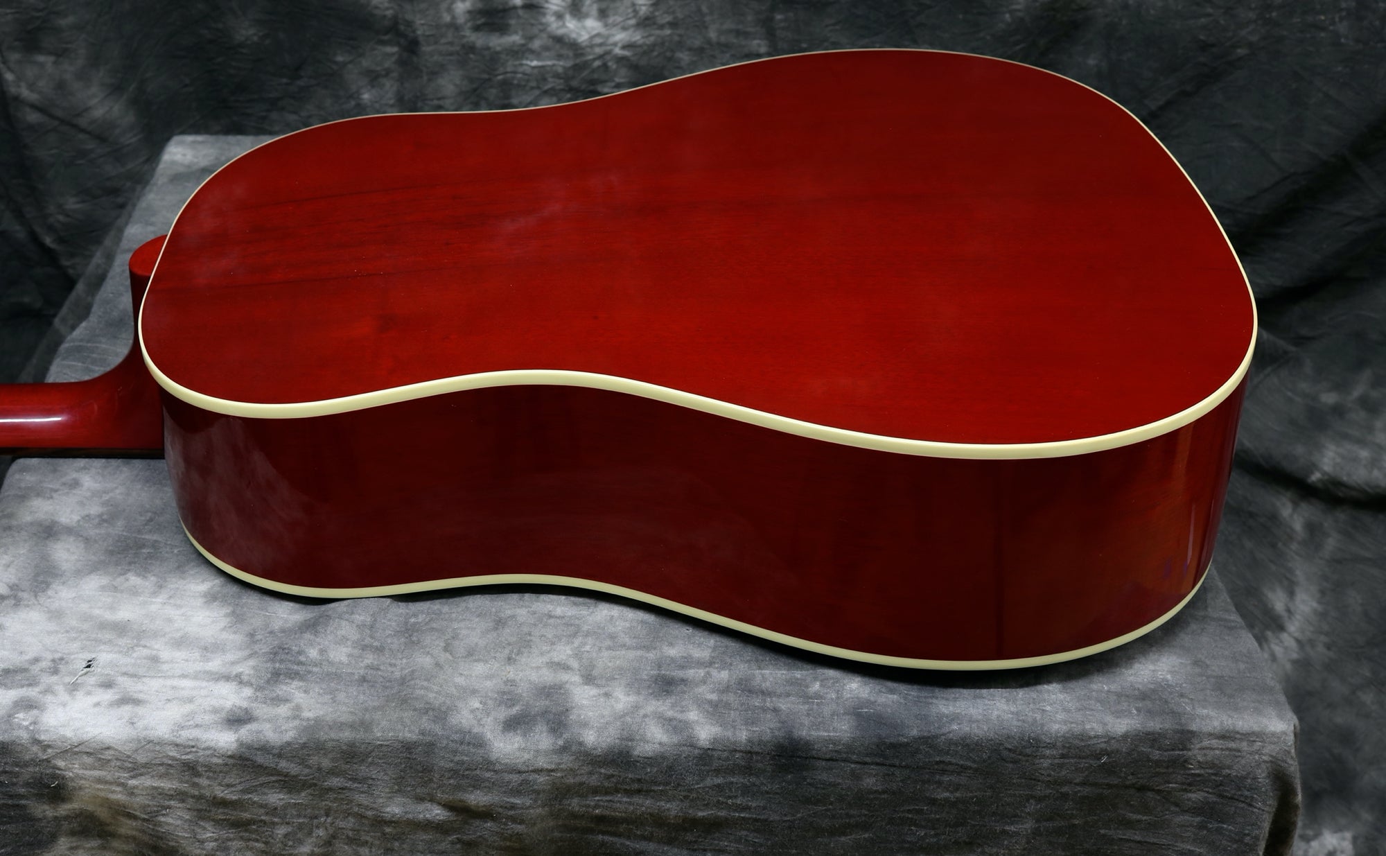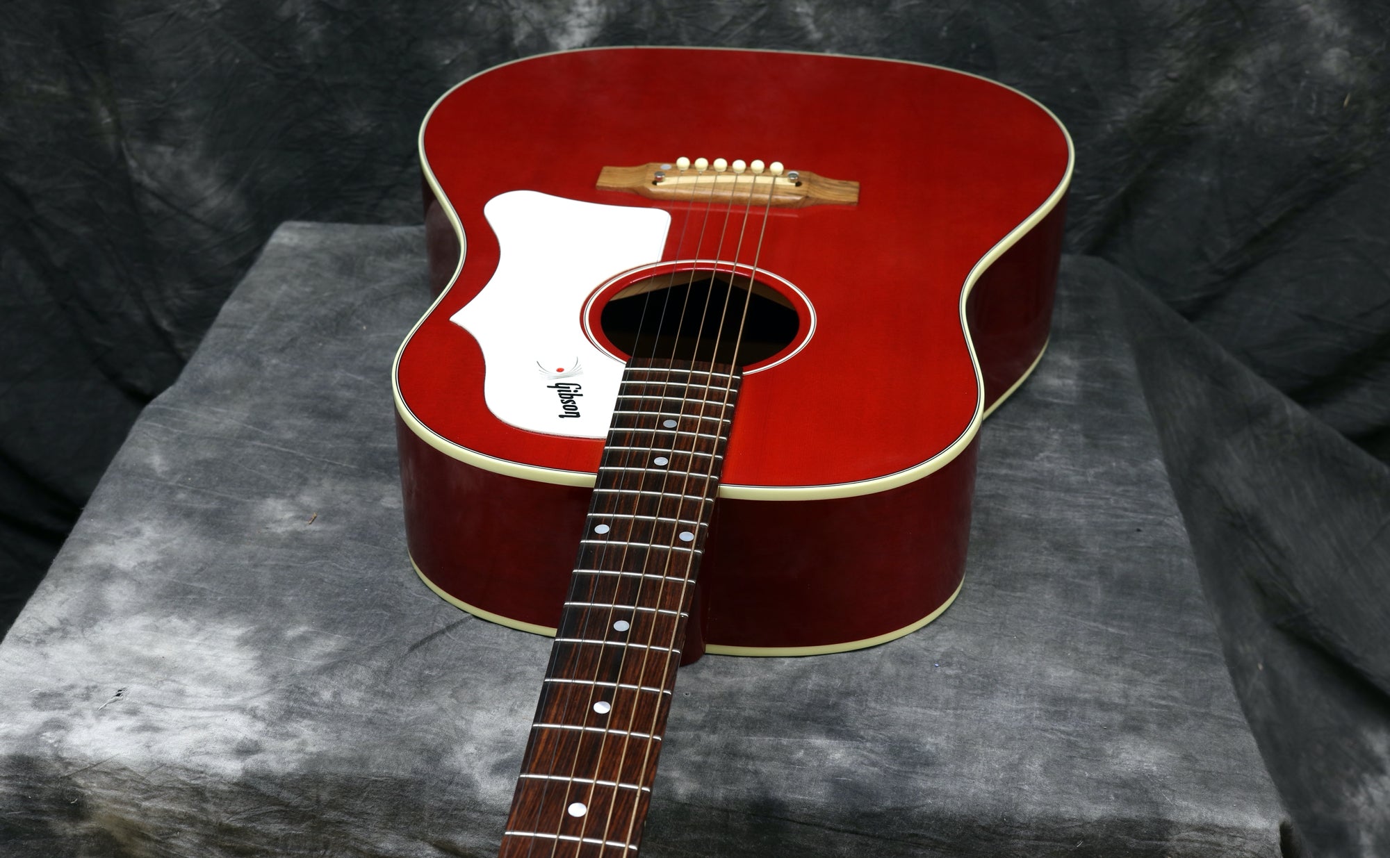 2012 Gibson J45, '68 Reissue, Cardinal Red finish in exceptionally good condition. Made in the Bozeman, Montana plant USA. Original warranty card and case. It has a white "Gibson" engraved pickguard. You just won't find too many of these around. This is one of a very limited run of J-45's that Gibson produced, as a tribute to the J-45 style that was popular in 1968. This has the cool adjustable bridge, just as the original 68 version. It's a double-bound, slope shoulder dreadnought with a spruce top, rosewood bridge and fingerboard, mahogany back & sides. A truly superb example that produces a warm, rich tone & plays like a dream.