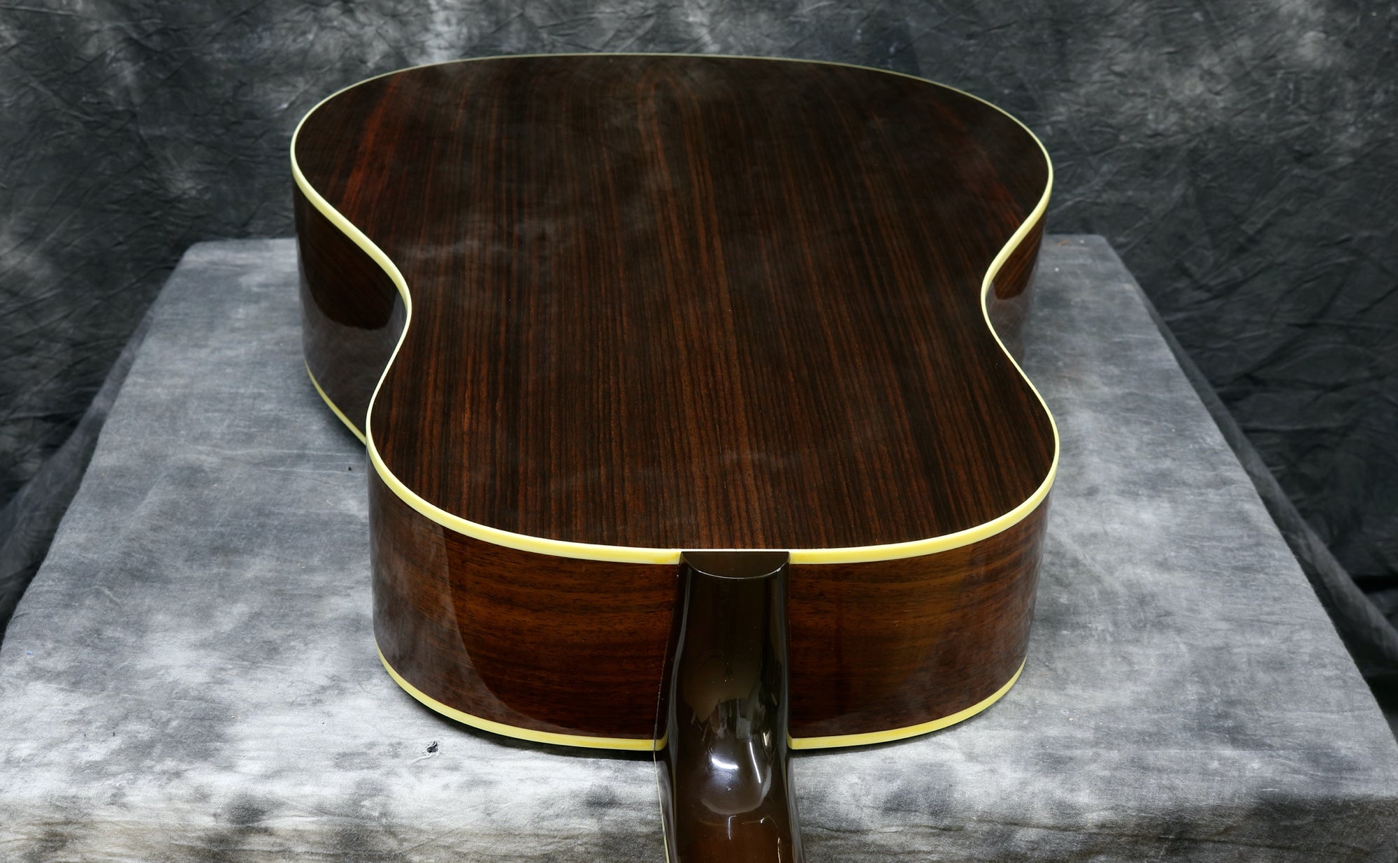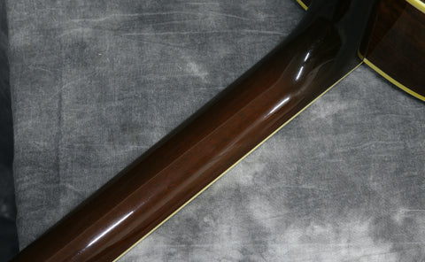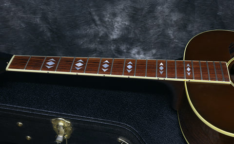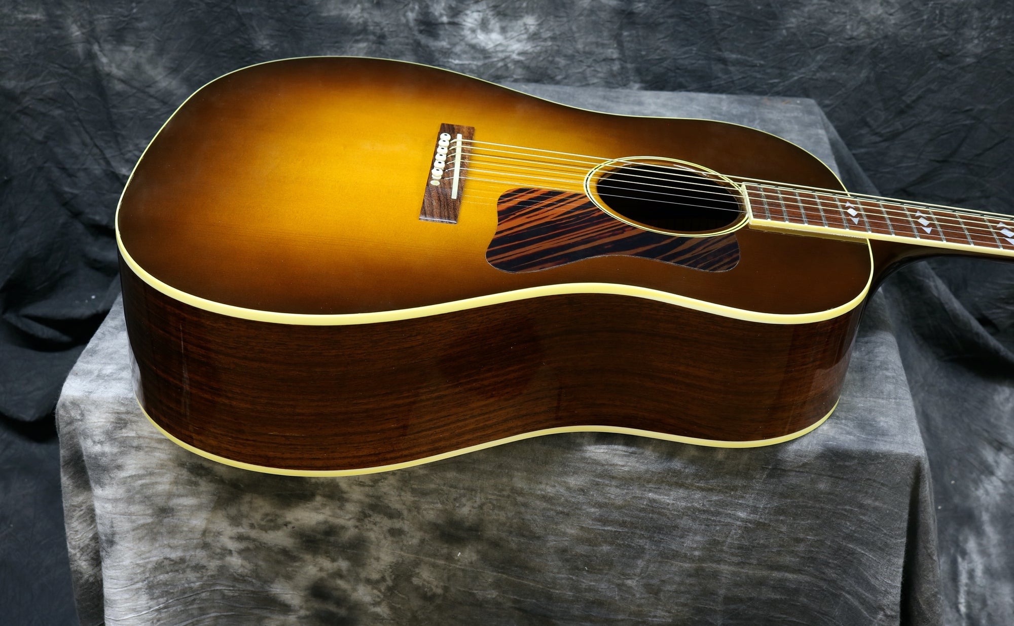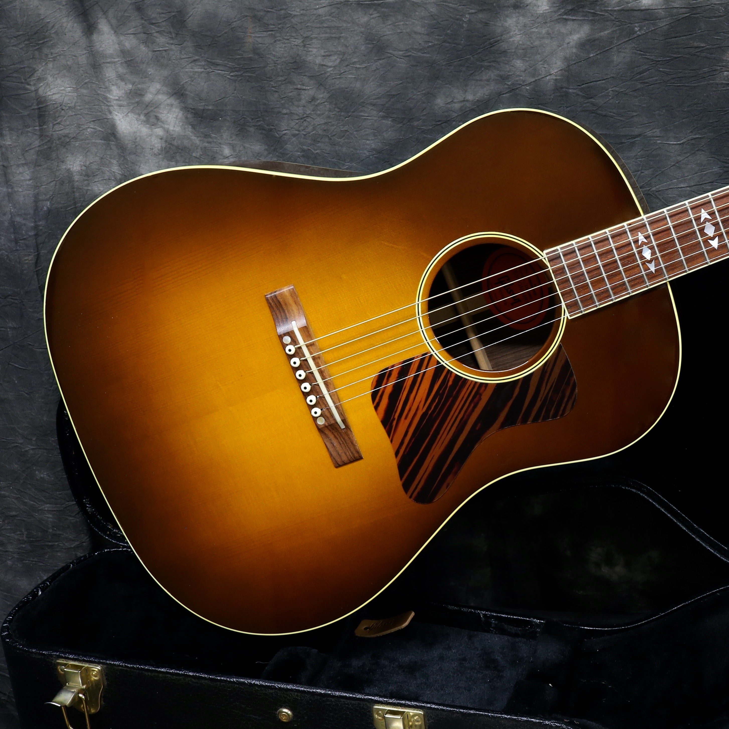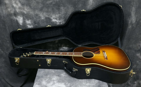 This is a very rare 2013 Limited Edition Amber Burst Advanced Jumbo from Gibson's Bozeman, Montana custom shop of which only 75 were made. It's a faithful reproduction of their original 1930's Advanced Jumbo of which only 300 were made. This guitar has a solid Adirondack spruce top, rosewood back and sides and a rosewood bridge. It has a beautiful book-matched back and, like the original, it has scalloped spruce X bracing providing superb tone and projection. The guitar has been professionally set up so both intonation and playability are as good as it gets. As so few were made, the rarity of this acoustic will ensure that they'll only increase in value over the years.