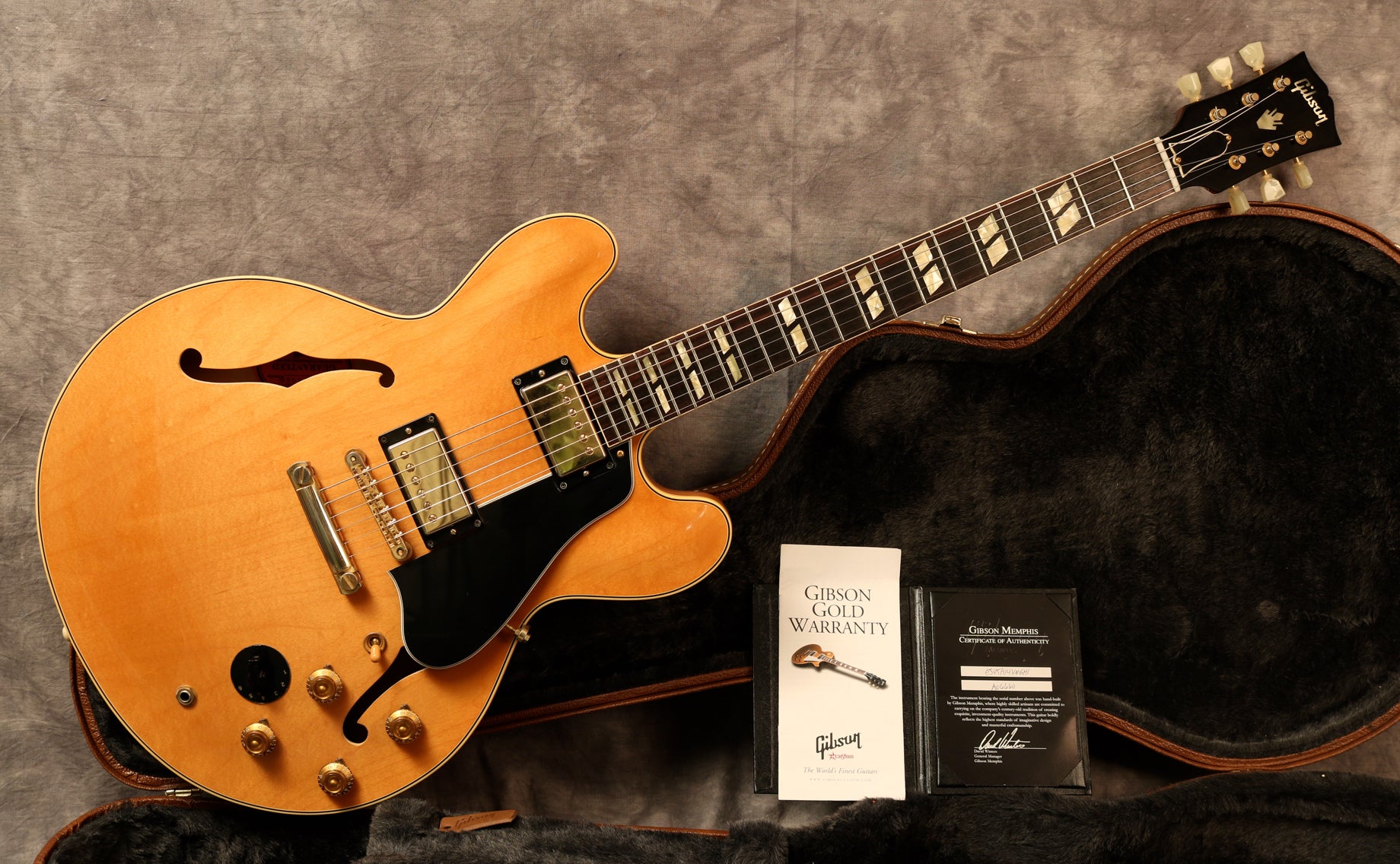 2014 Gibson Memphis 1959 ES-345 in vintage Natural Finish. At the time of production, the Vintage Natural Lacquer Finish was $352.65 up-charge compared to Historic Burst. Excellent, near mint condition with only a couple superficial tiny marks, and some very slight hardware fading. It comes with the certificate of authenticity, packing slip and original case. The sound is absolutely incredible!