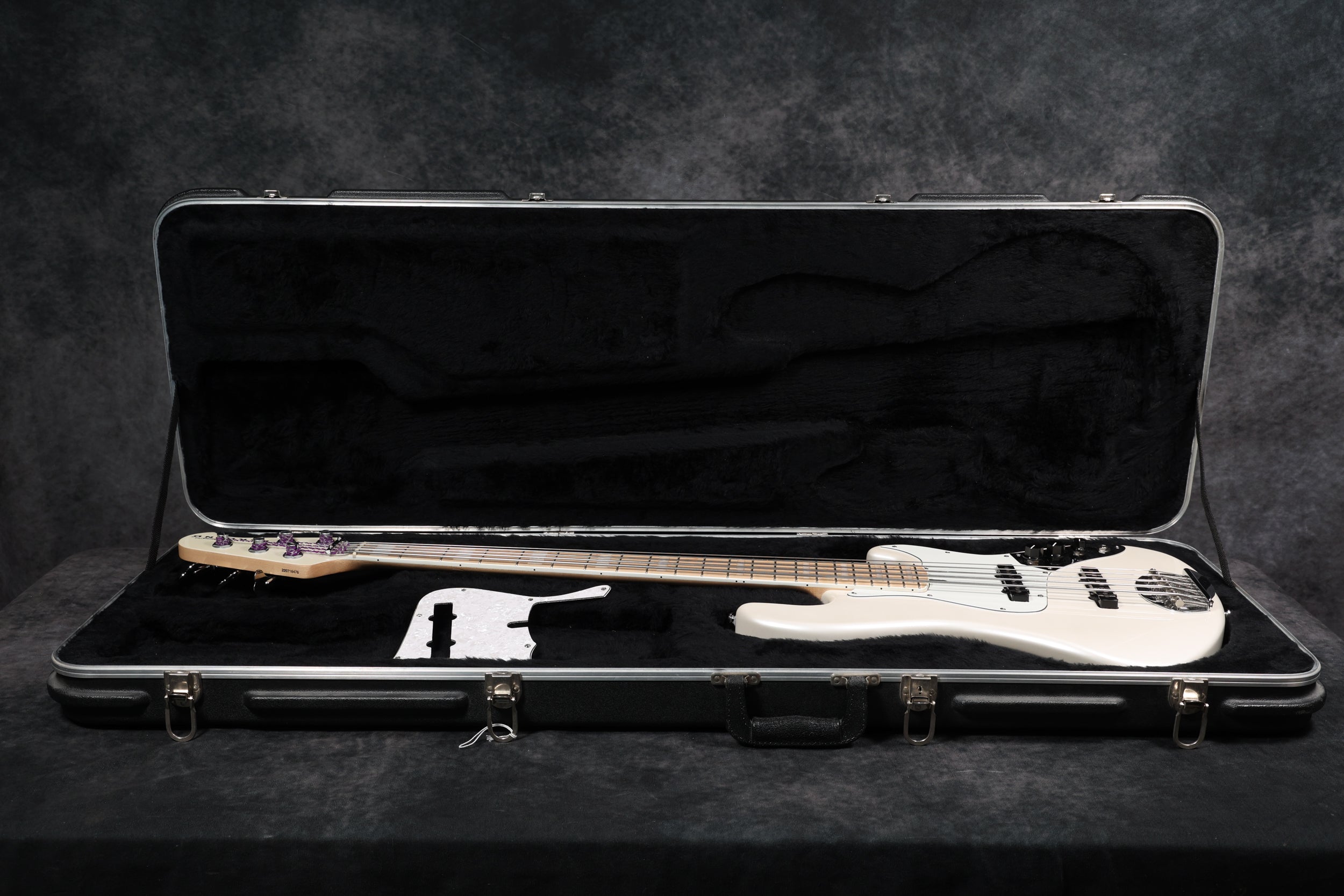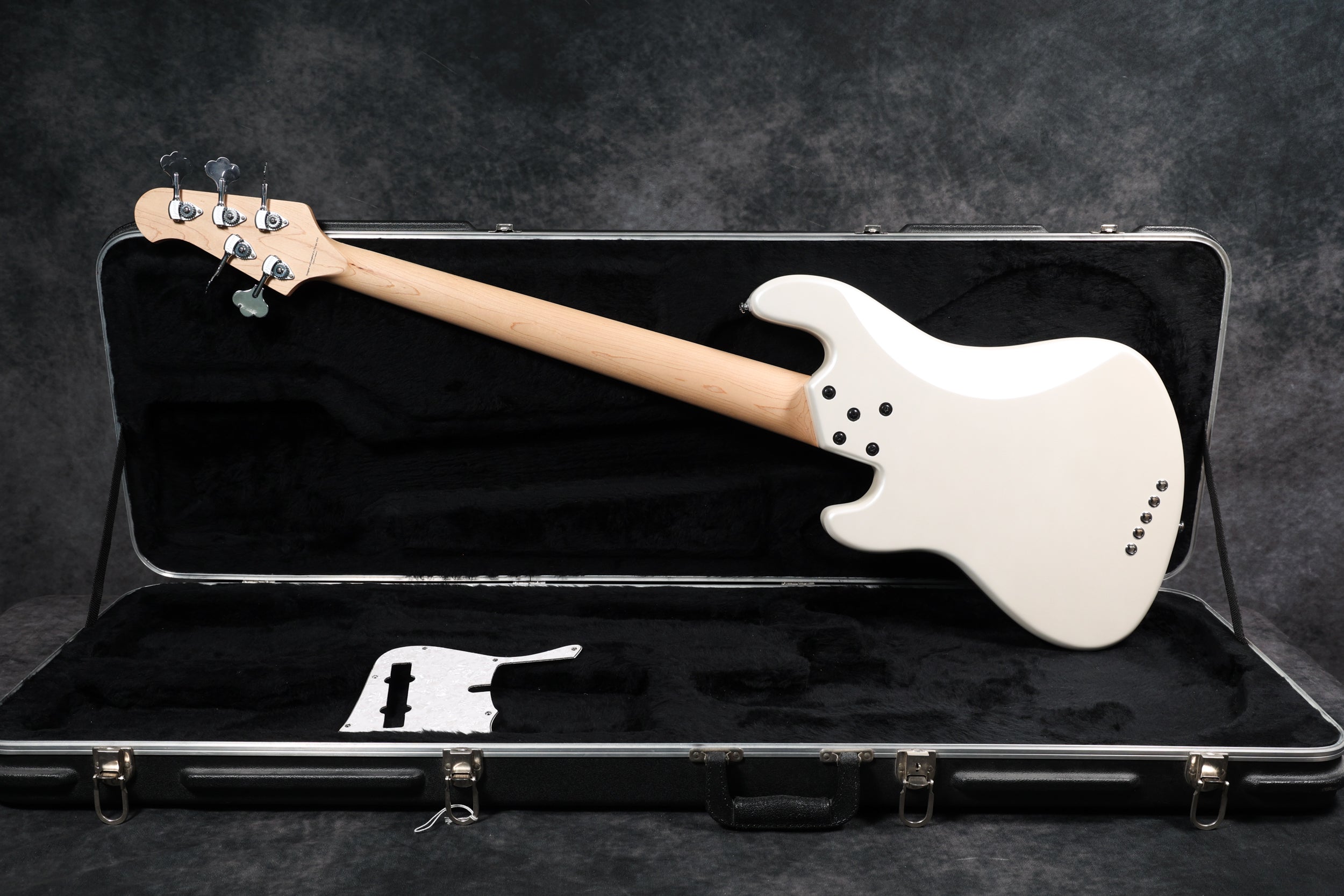 This bass has been fitted with a new pickguard; the original is included in the case.
