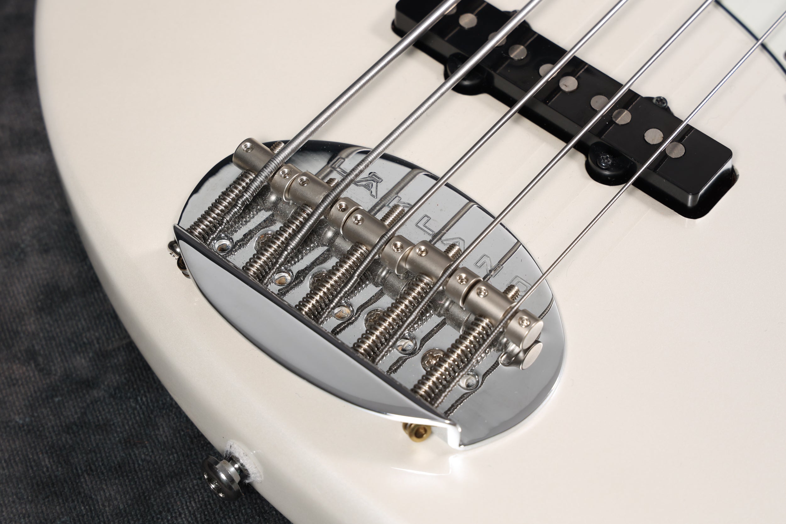 Fully set up in our workshop with a low action, giving great playability. The bass is strung with La Bella Olinto flats. The frets show very little wear. The truss rod works as it should and the neck is straight. Serial: 220718476. Weight: 11 lbs 5 oz / 5.12 kg. Nut Width: 44.9 mm. Depth at 1st fret: 20.5 mm. String spacing: 19 mm.