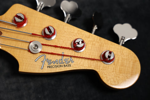 This is a really cool bass. Sound-wise, it’s got deep, defined lows, with a rich, present mid-range, and a nice snap at the top-end. And that finish?! In vintage-correct fashion, this P-Bass sports a 2-piece alder body, quartersawn maple neck with a ’57 soft V neck profile, 9.5″ radius fingerboard and vintage-style frets, as well as vintage-style machine heads.