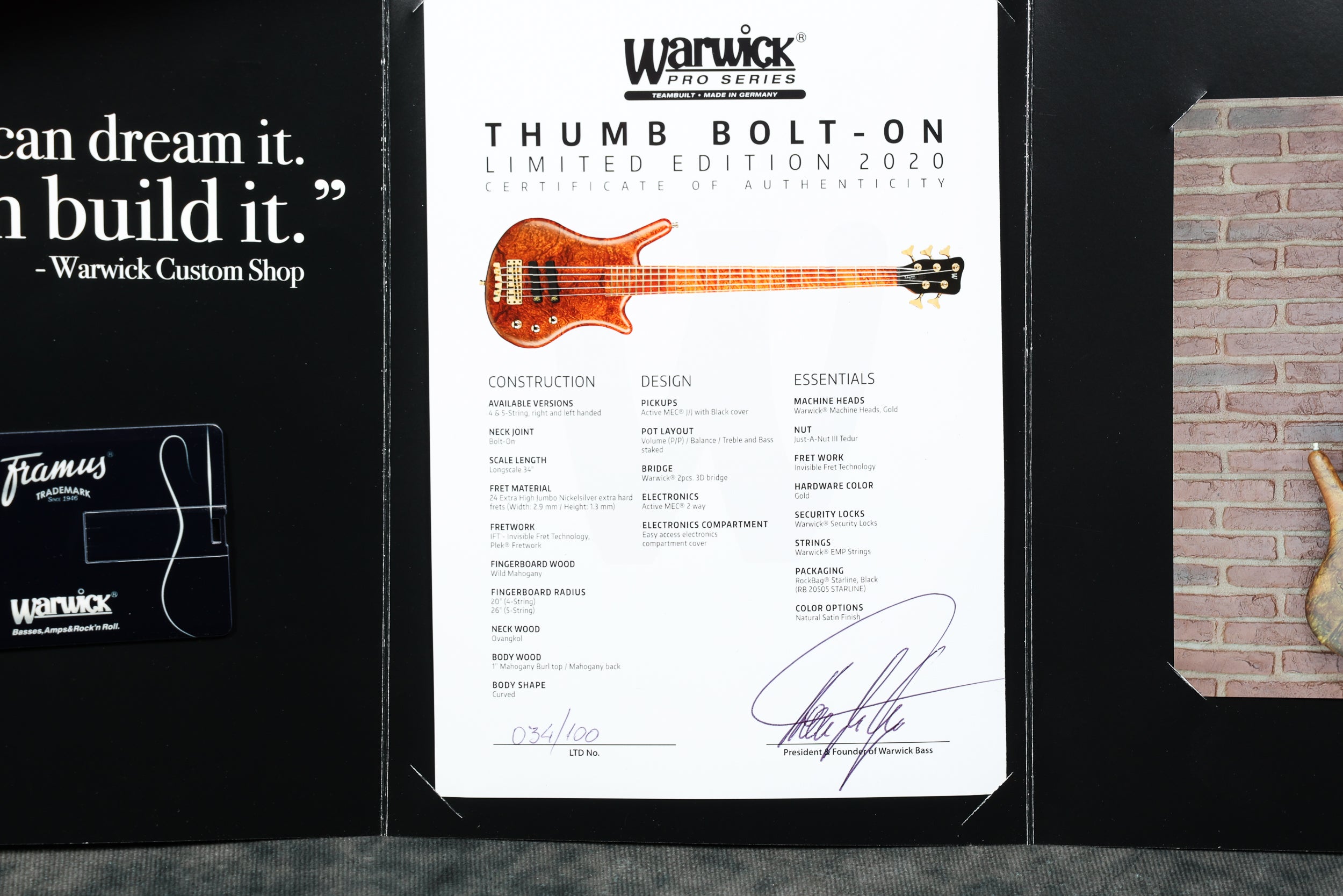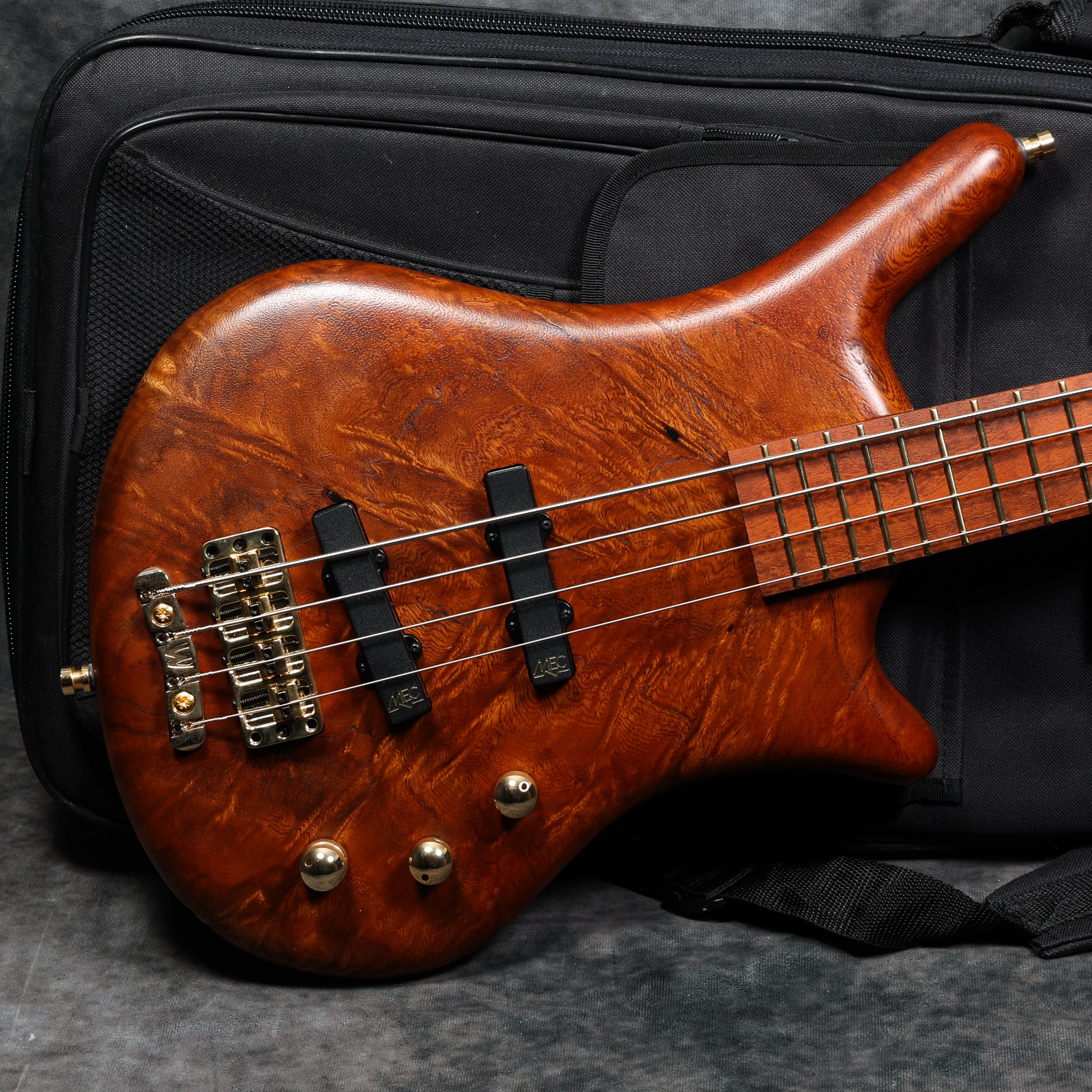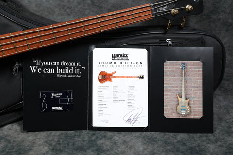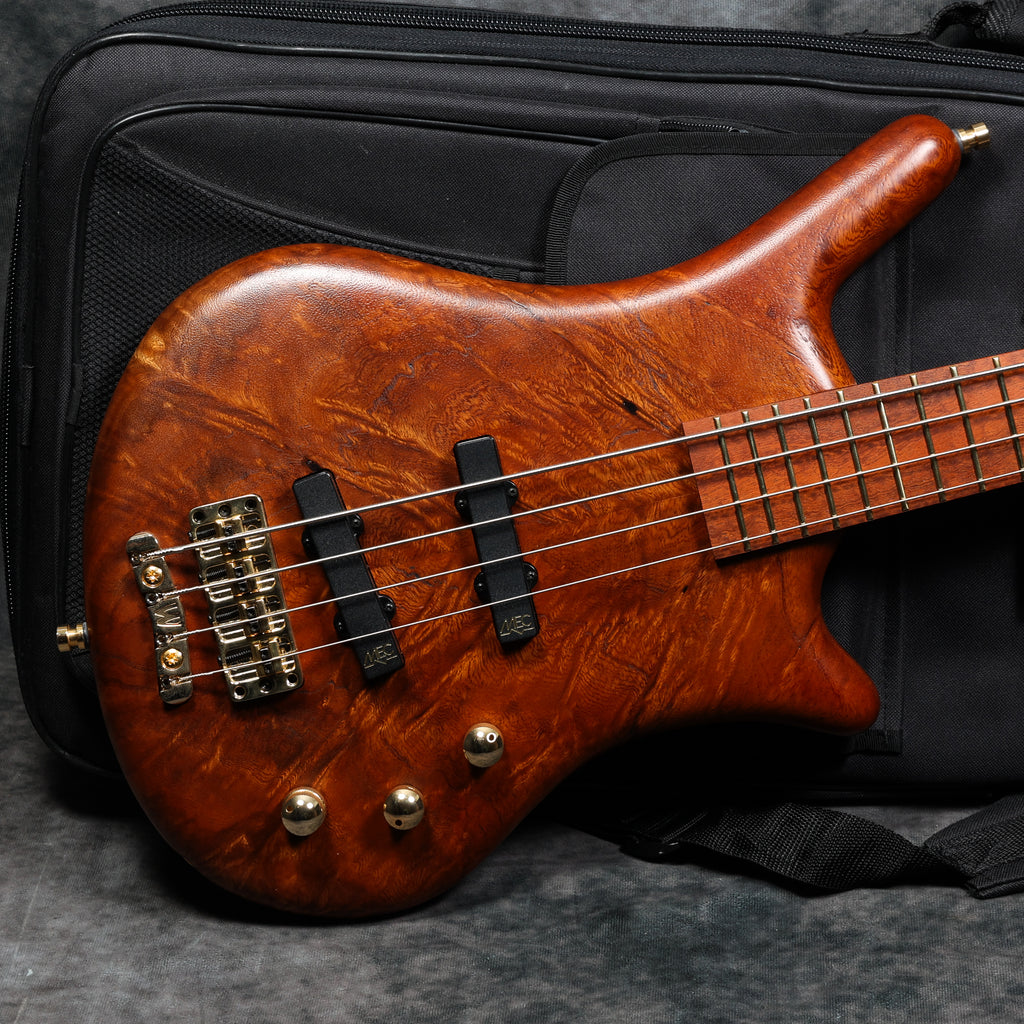 2020 Warwick Ltd Edition Thumb BO 4-String - Mahogany Burl top. Mint condition. Supplied with a Warwick gig bag and certificate of authenticity. Weight: 8 lbs 13.5 oz / 4.01 kg. Nut width: 39 mm. Depth at 1st fret: 20 mm.