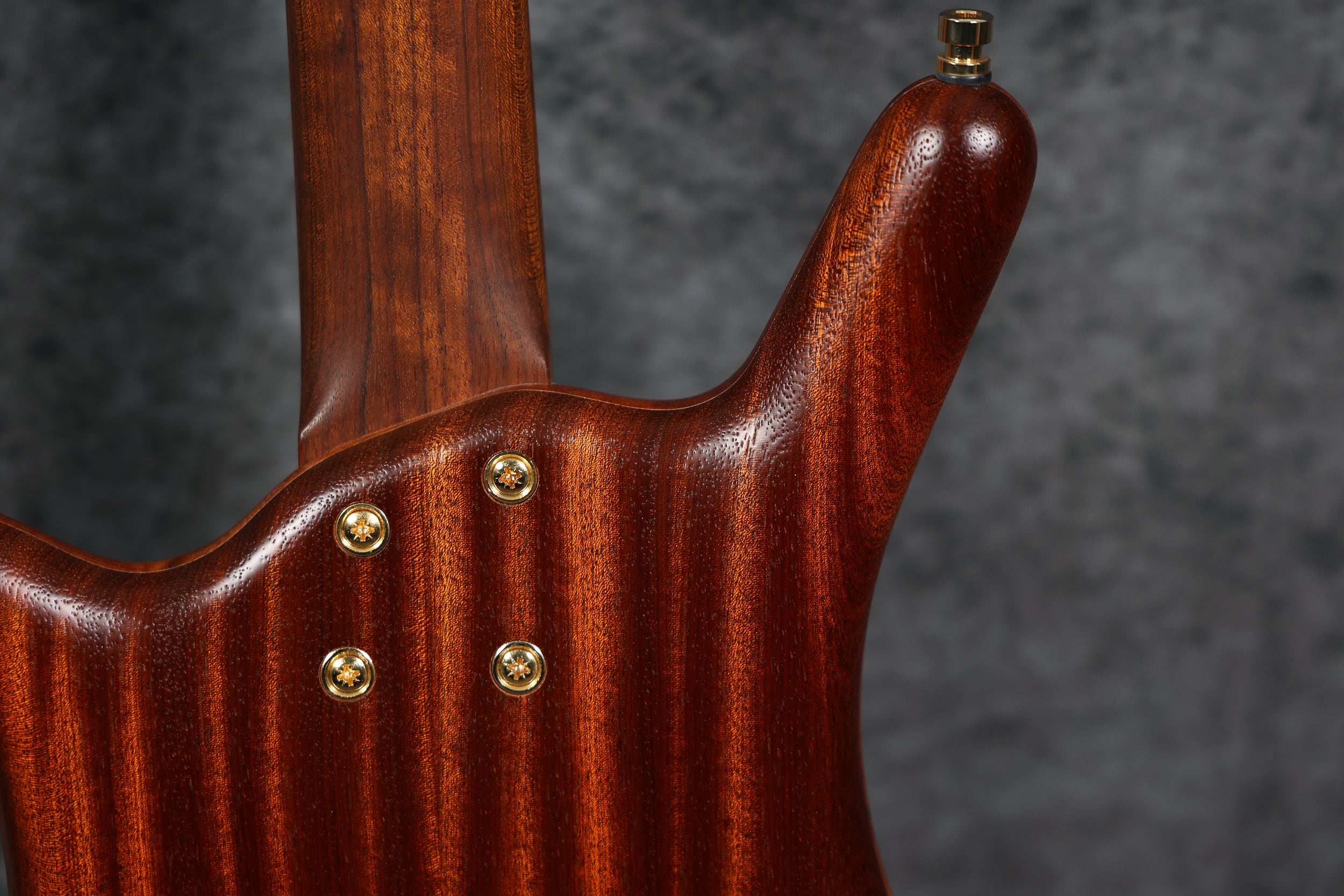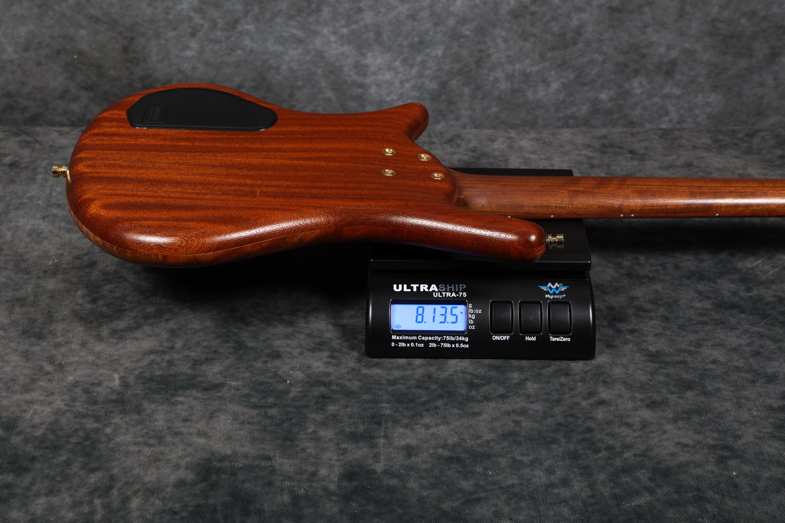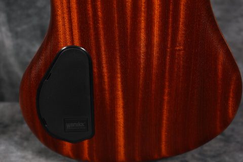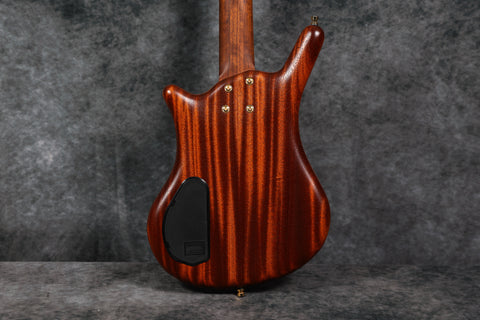 The BO Teambuilt model features a laminated Ovangkol bolt-on 34" neck with a 24-fret wild mahogany fretboard. Also boasting a mahogany Thumb body shape with a satin-finished 1" mahogany burl top, this bass has a natural look which is complemented further by its gold hardware.