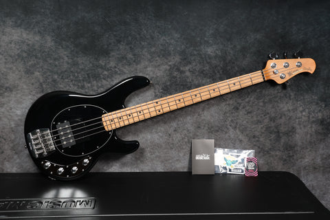 2021 Music Man Tim Commerford StingRay - Active 4H. Black finish in near-mint condition. It has minimal signs of use with just a few light surface scuffs on the back of the body. Original case included. Serial number: B058719. (Number 18 of 50) Nut width 43.5 mm. Depth at 1st fret 21 mm. Weight 8 lbs 3.5 oz / 3.73 kg.