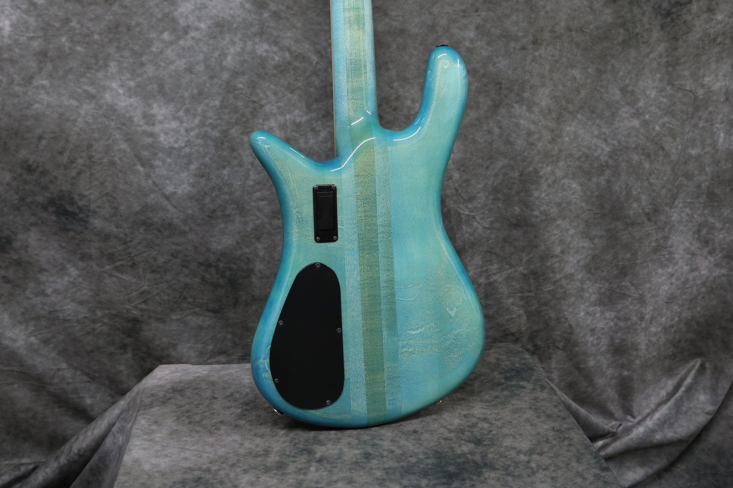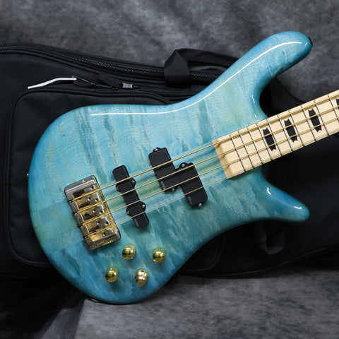 Spector Euro 4 LX Doug Wimbish Bahama Blue, limited Edition in mint condition. Serial: NB-17277. Weight 9lbs / 4.08 kg. Modified with a new Aguilar OBP-3 preamp, flush mount strap locks, gold control knobs and hipshot d-tuner. The original pre-amp, pots and knobs are included.
