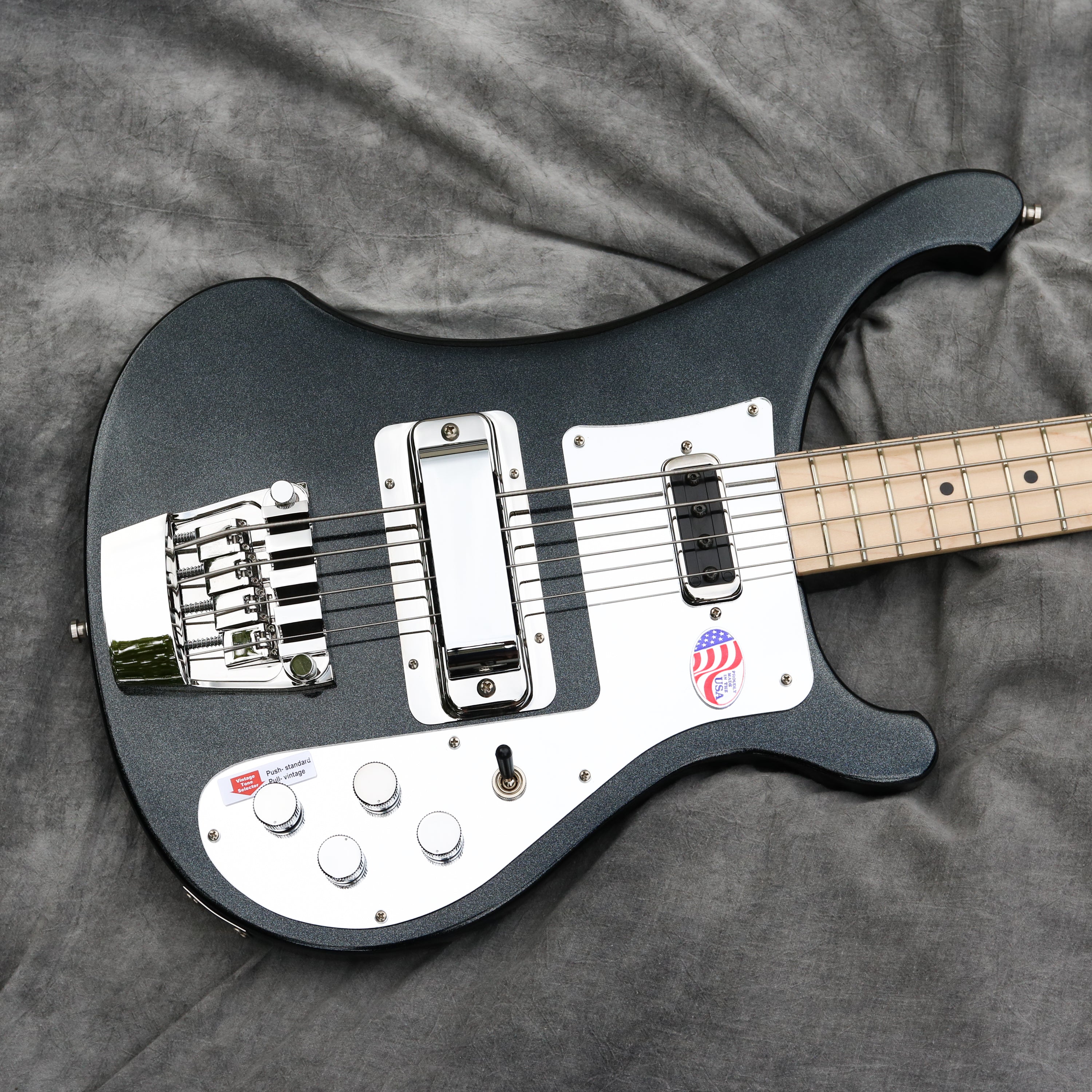 The body is made from high-grade walnut which is similar to maple tonally but with a bit of added warmth. The maple used for the bass's neck, which runs through the entire length of the body, aids in maintaining its structural integrity. The 4003JPS also boasts a maple fretboard — a sought-after rarity for Rickys.