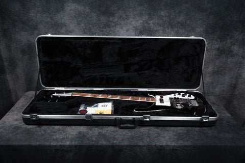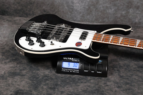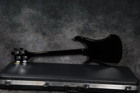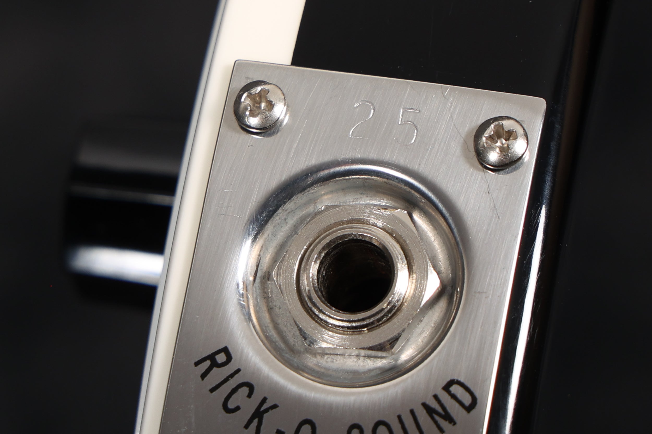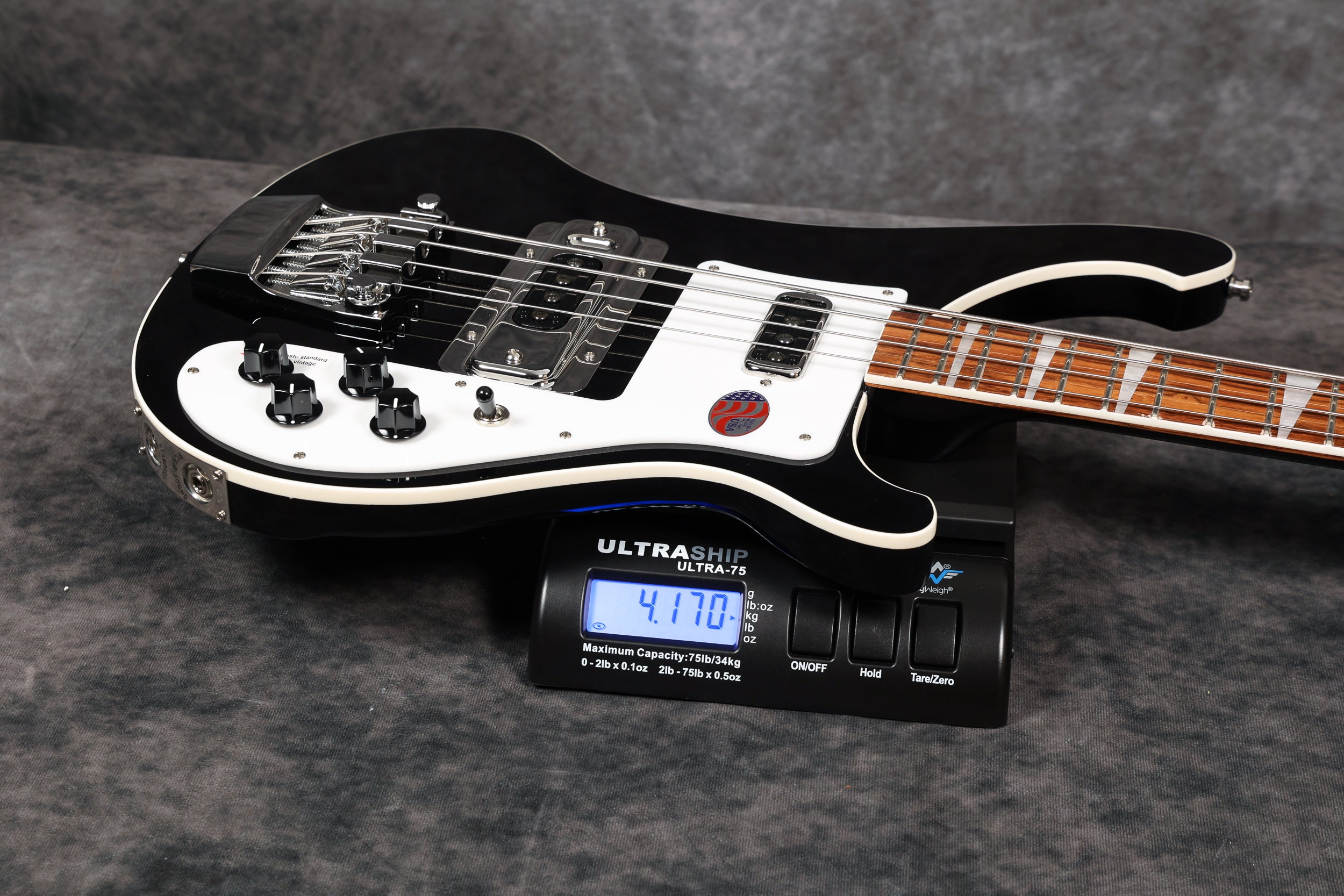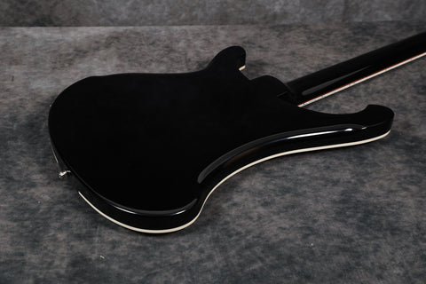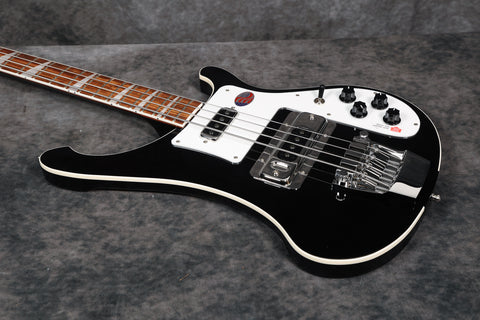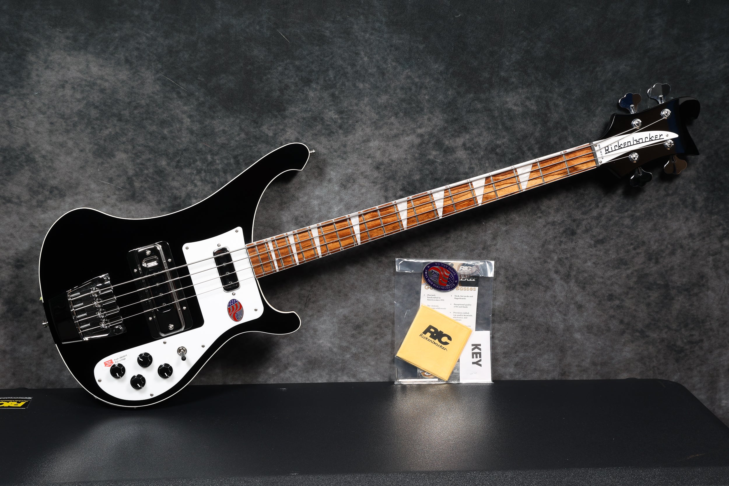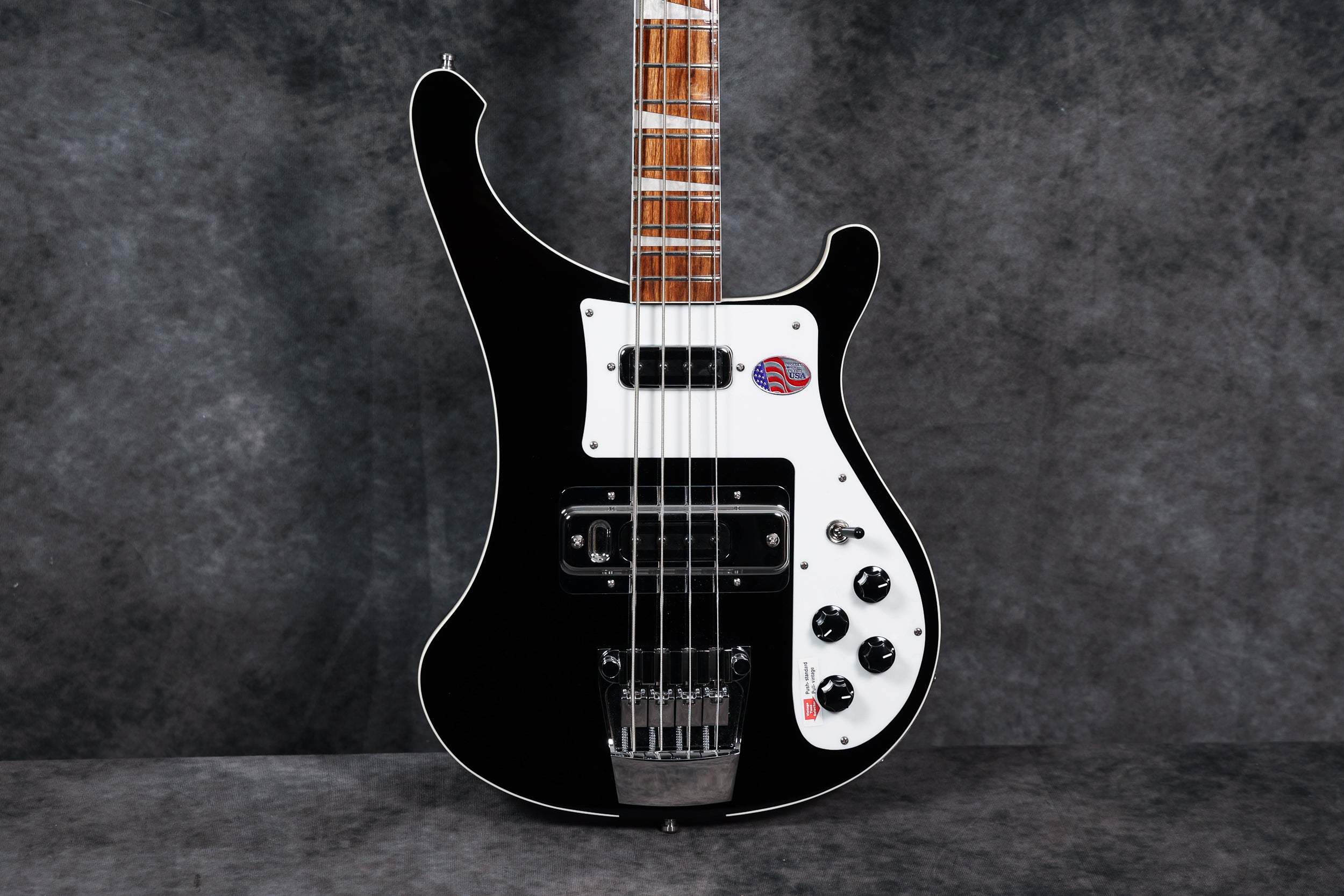 2025 Rickenbacker 4003, Jetglo finish, lacquered fingerboard. Mint/unplayed condition - you will be the first owner to play this bass. The bass pictured is in stock. This is the latest version with no pickup cover as standard. It also has the new version 2 tailpiece and bridge, and a slim-profile neck with a double-action single truss rod. Weight 9 lbs 3 oz / 4.17 kg.