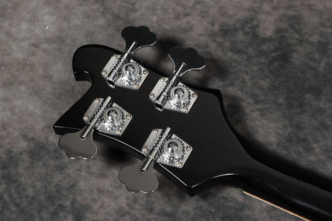 The Rickenbacker 4003 Bass is famous for its ringing sustain, treble punch, and solid underlying bottom end. It's also famous for its distinctive, elegantly curved body shape, accentuated by a subtle strip of binding, deluxe triangular fretboard inlays, stereo output, neck-thru-body construction, double truss rods, and high-output single-coil pickups with wide response range and brilliant clarity. The Vintage Tone Selector activates a capacitor in the treble pickup circuit to emphasise the high end. Pressed in, you get the familiar 4003 sound, pull it out to add bite and crispness.