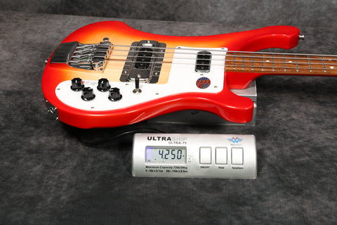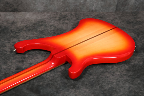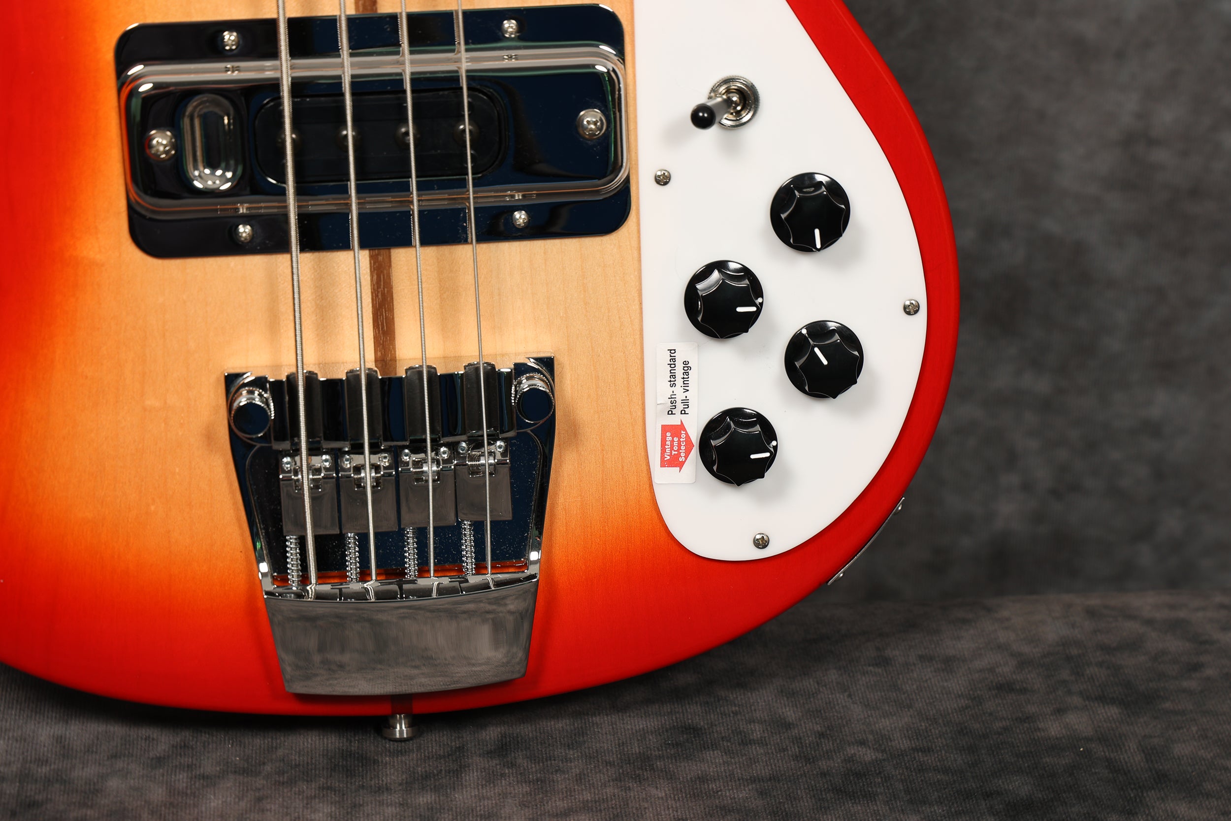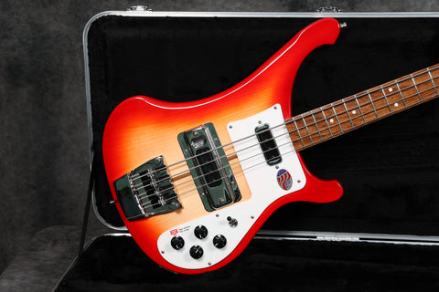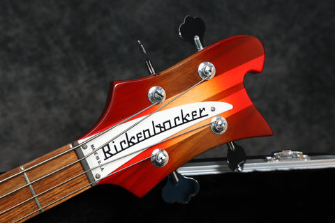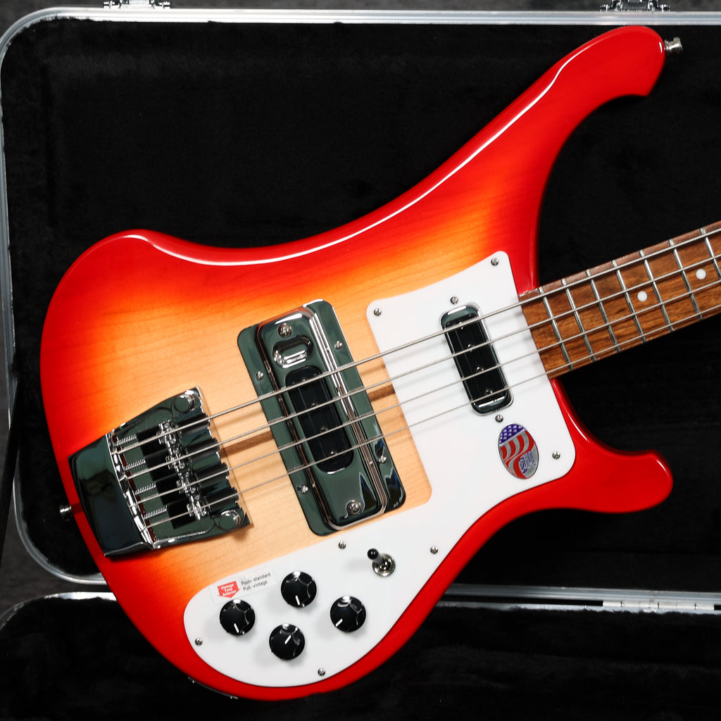 2025 Rickenbacker 4003S with a Fireglo finish and a lacquered fingerboard. This is the latest version with no pickup cover as standard. New Version 2 tailpiece & bridge, double action single truss rod and slim neck profile.