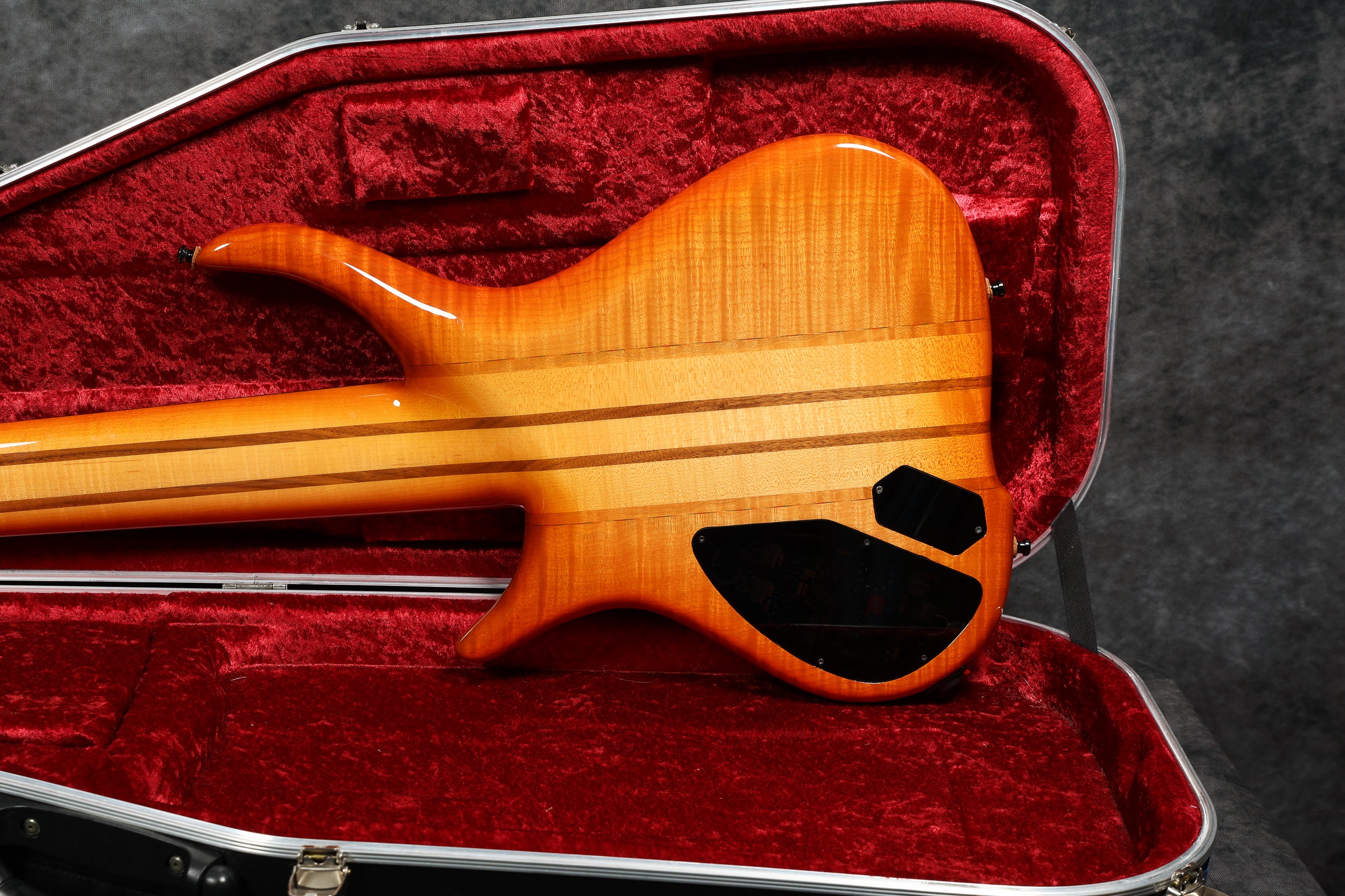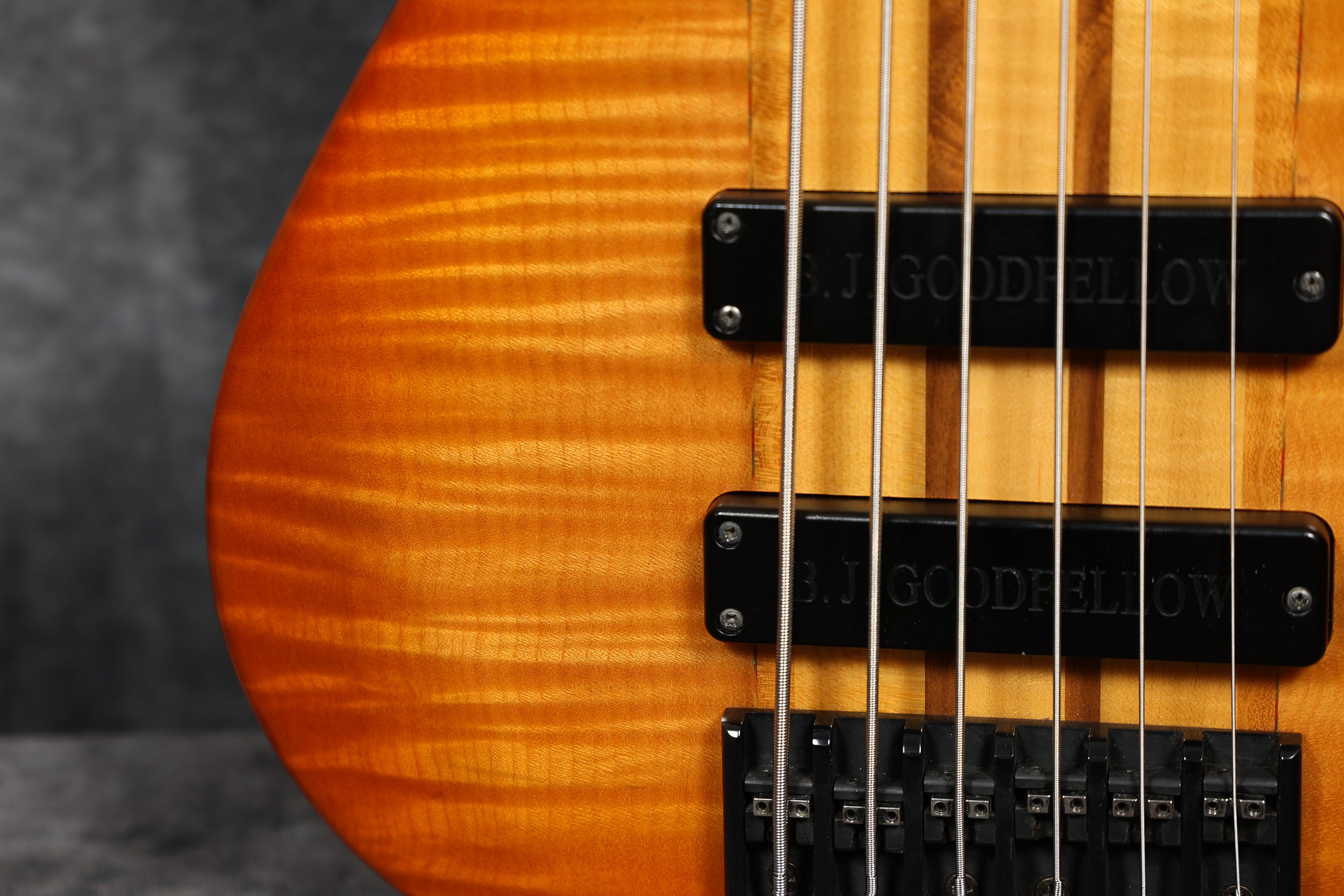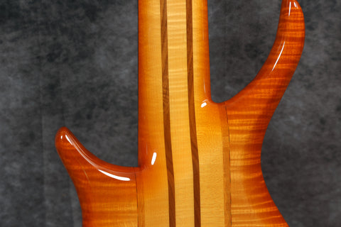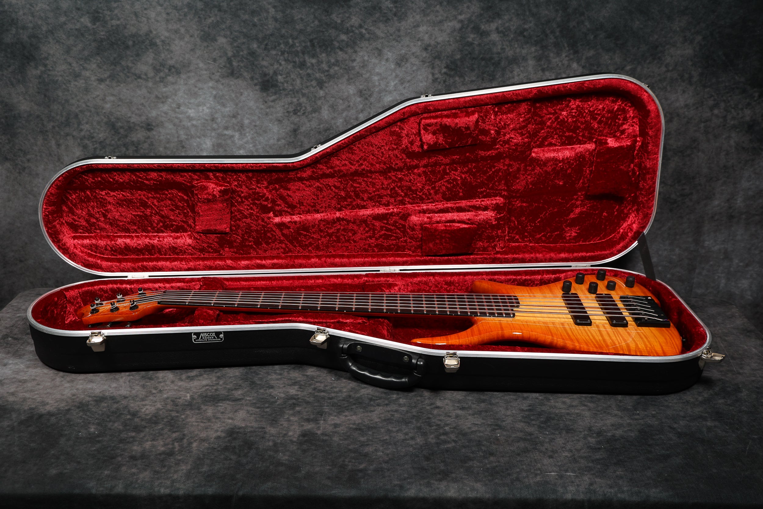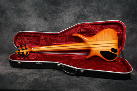 90s Goodfellow Rumour 6-String Thru-neck, SB Flame Maple. Fantastic bass made in the UK by Bernie himself. It's really comfortable to play and sounds great! Excellent + condition with a few light surface scuffs and a tiny chip in the finish on the tip of the headstock. Supplied in a Hiscox flight case.