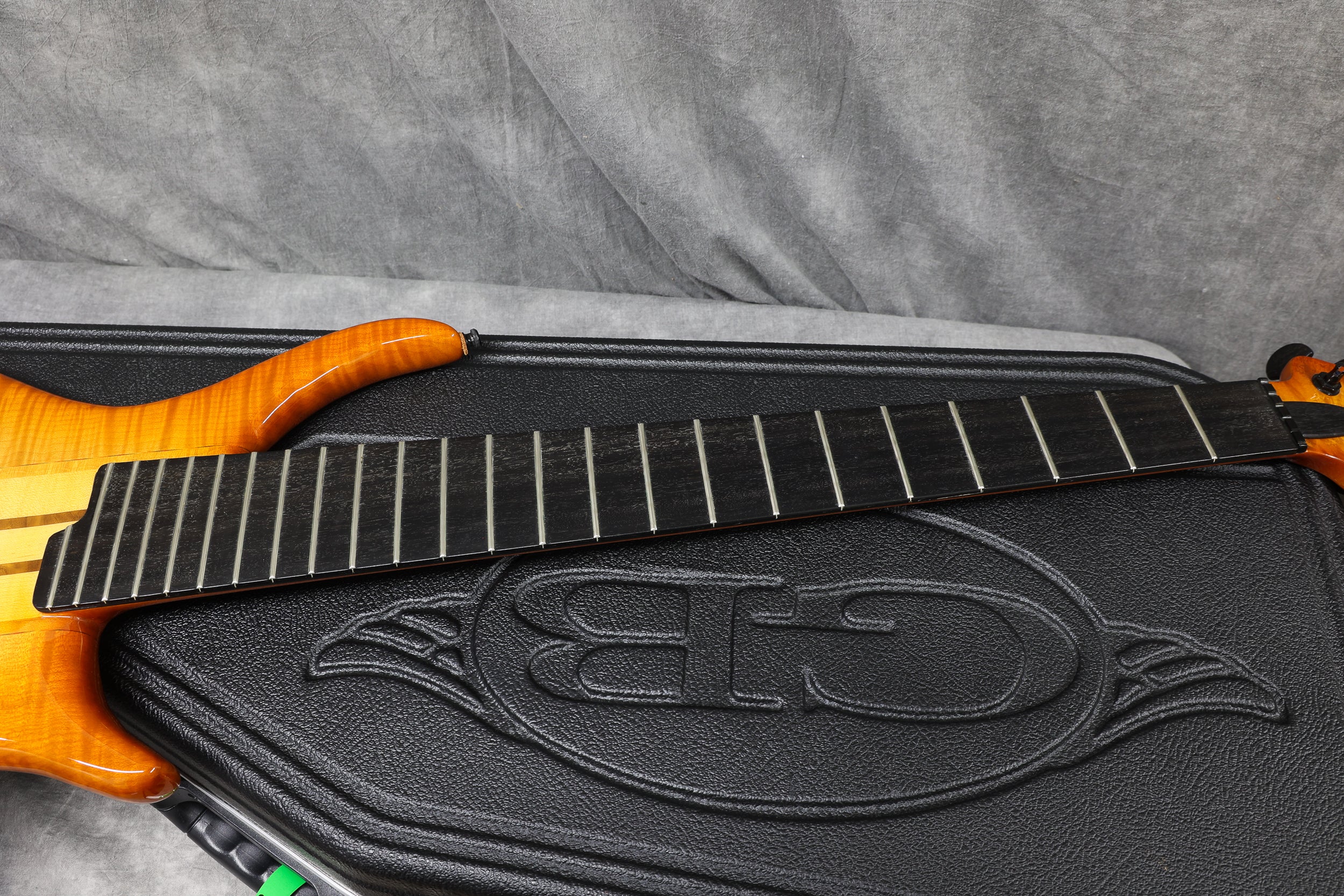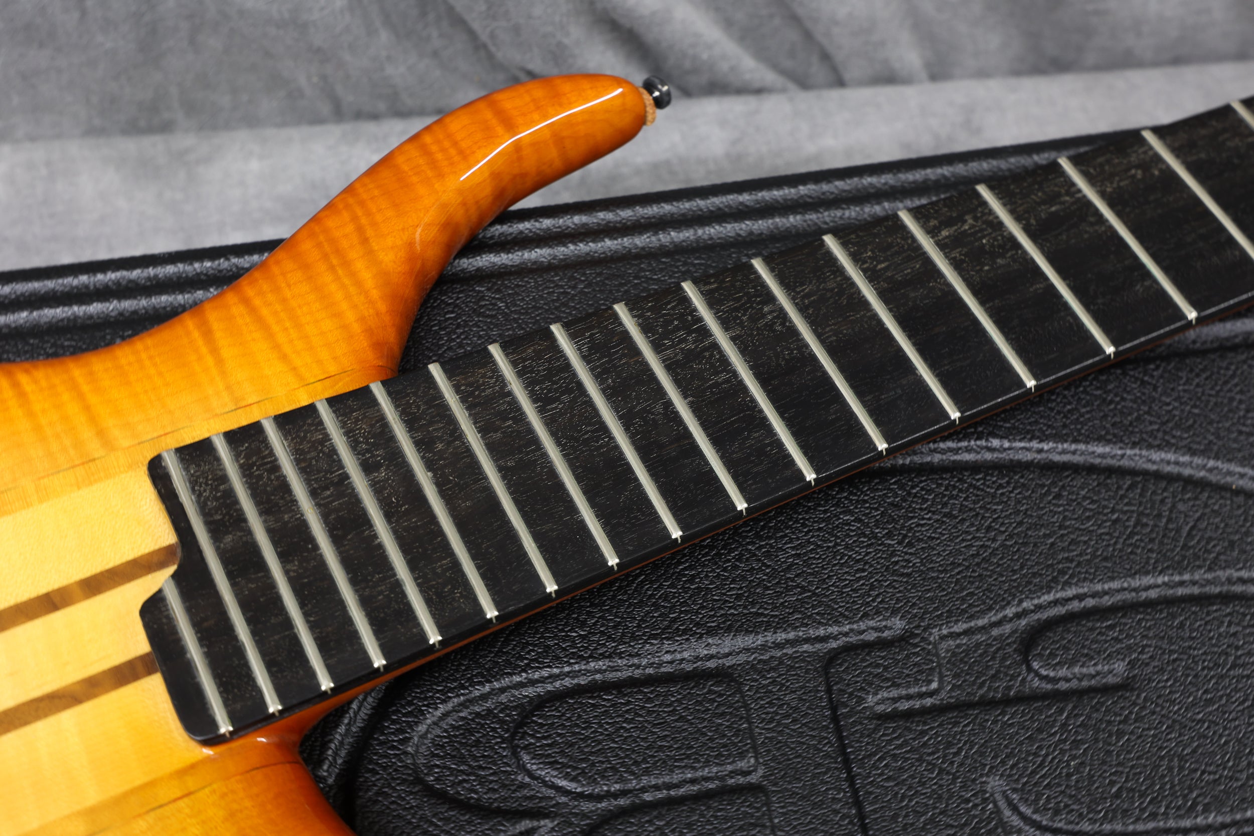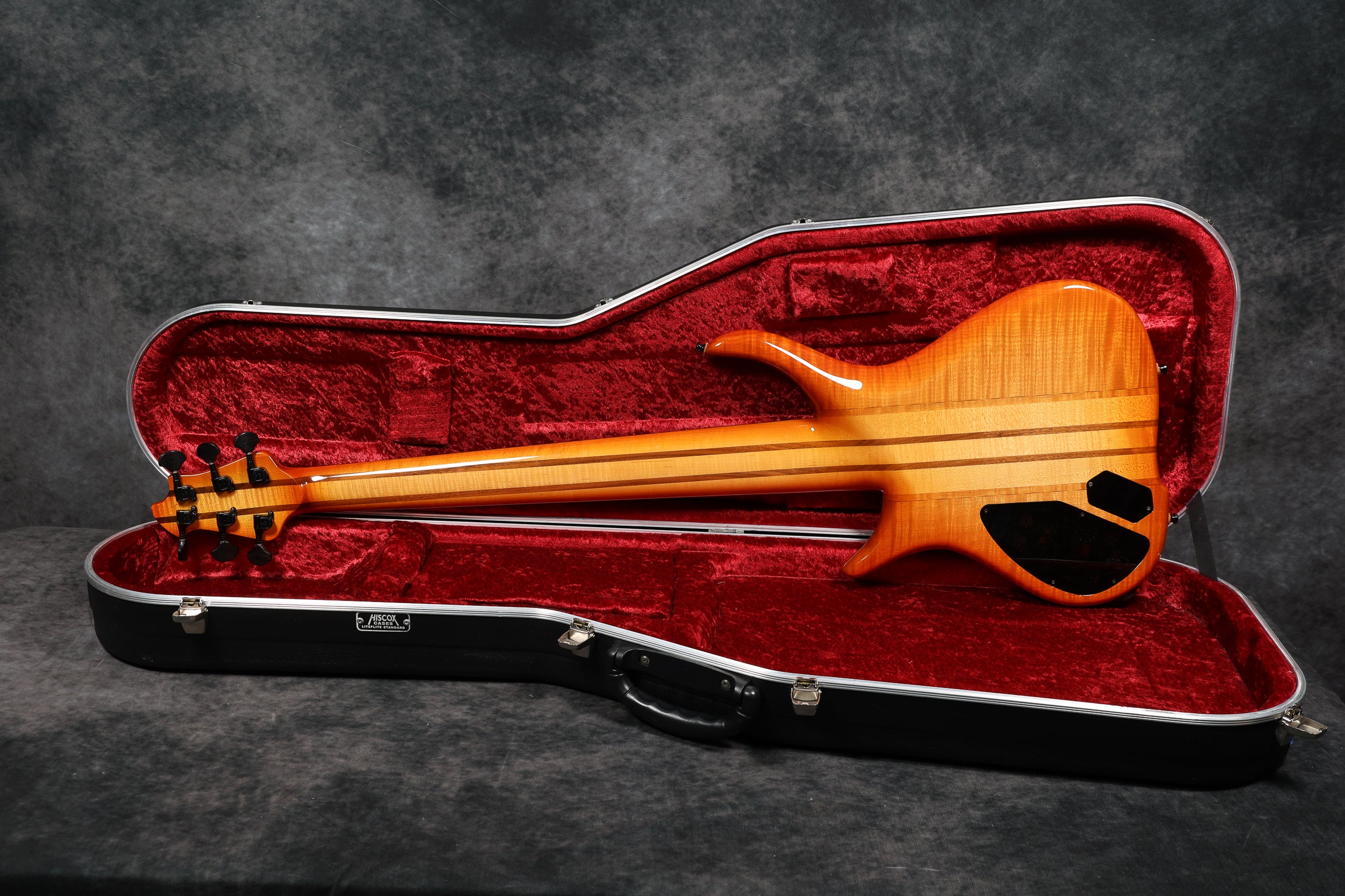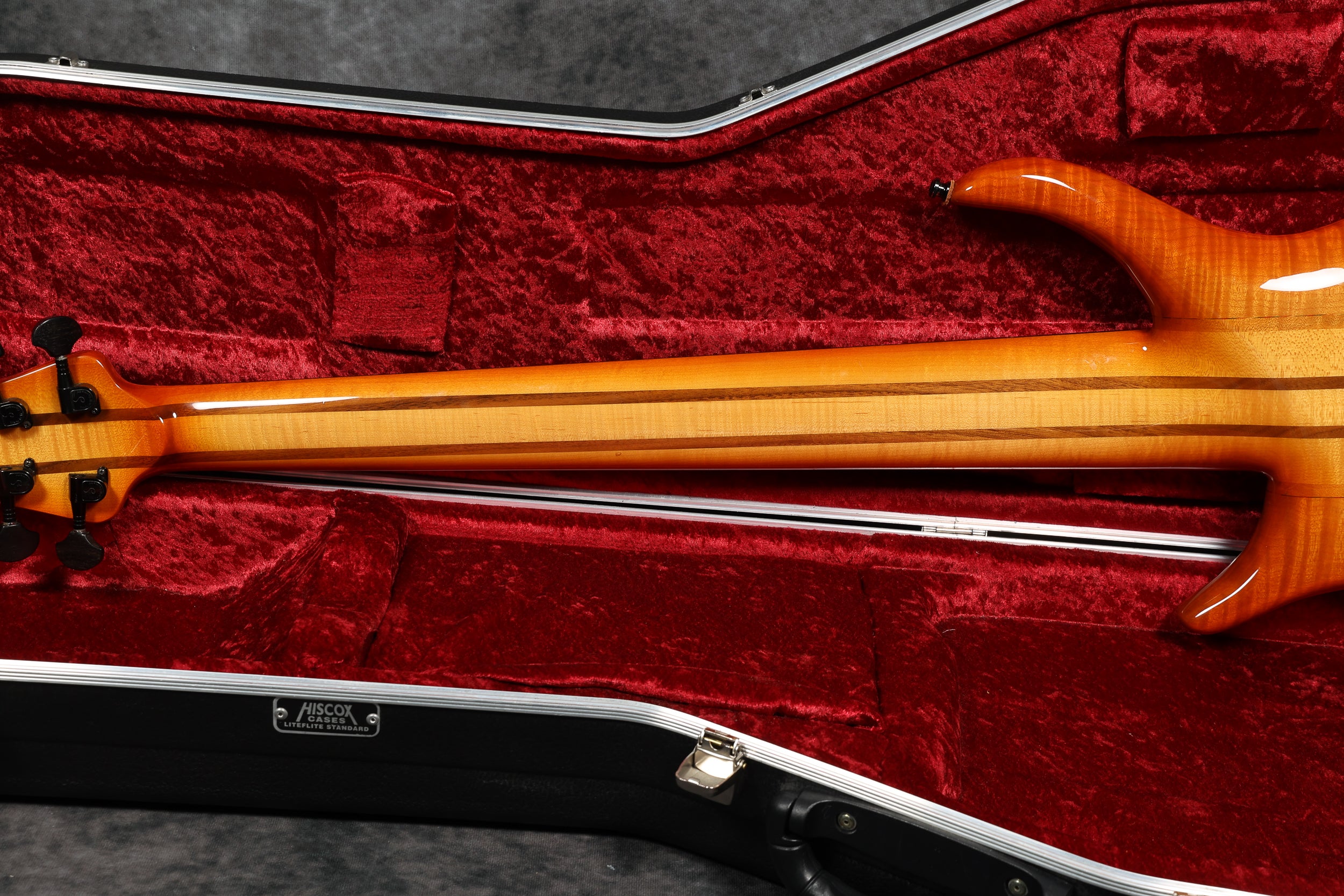 90s Goodfellow Rumour 6-String Thru-neck, SB Flame Maple. Fantastic bass made in the UK by Bernie himself. It's really comfortable to play and sounds great! Excellent + condition with a few light surface scuffs and a tiny chip in the finish on the tip of the headstock. Supplied in a Hiscox flight case.