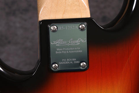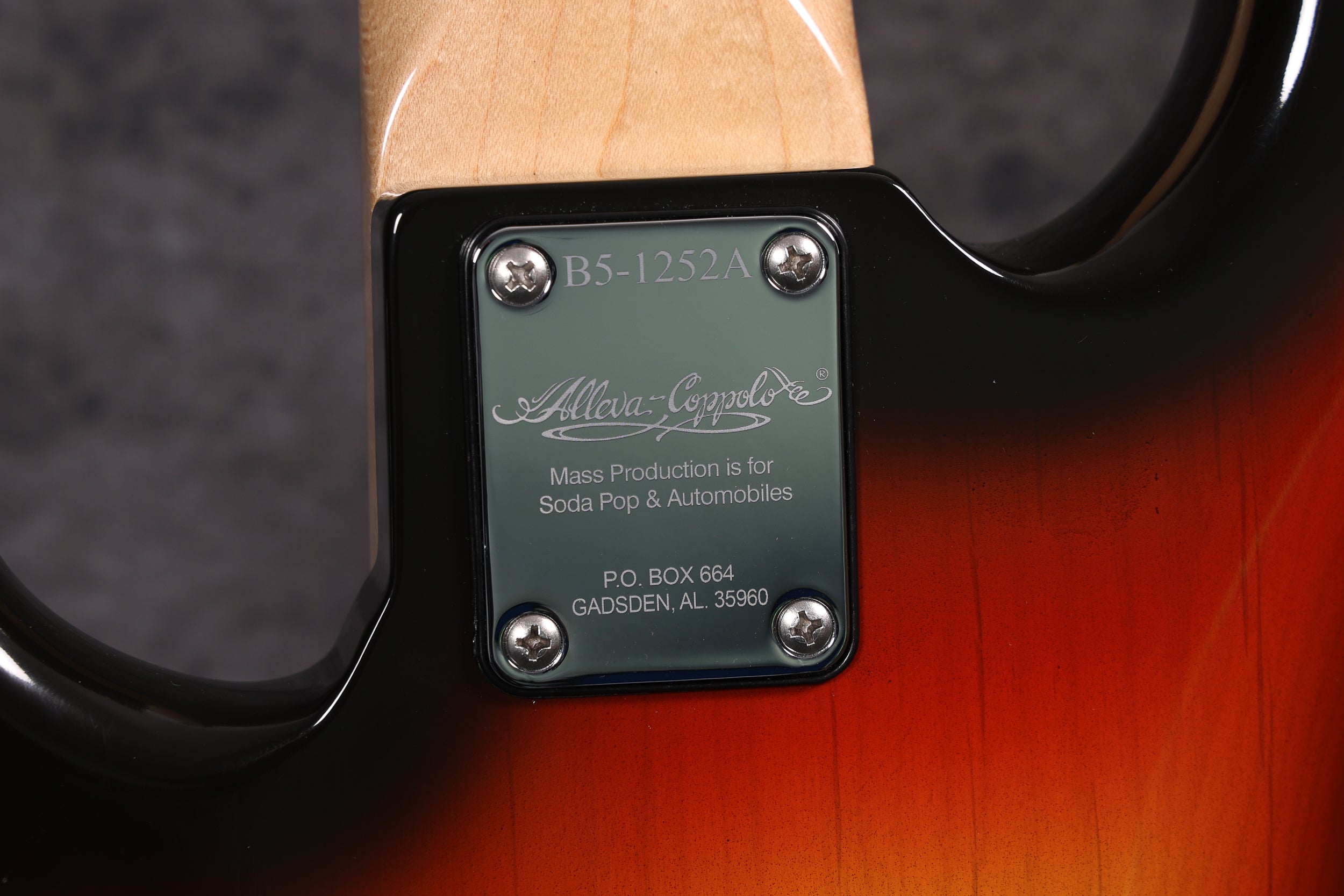 Brand new Alleva Coppolo KBP5 Classic in Sunburst. This bass features a maple neck, Indian rosewood fingerboard, and a nitrocellulose three tone sunburst finish, courtesy of the Professor. Comes shipped in a Protec Contego bass guitar case with Alleva Coppolo branding. Width at nut: 47.5 mm. Depth at 1st fret: 22 mm. Serial: B5-1252A.