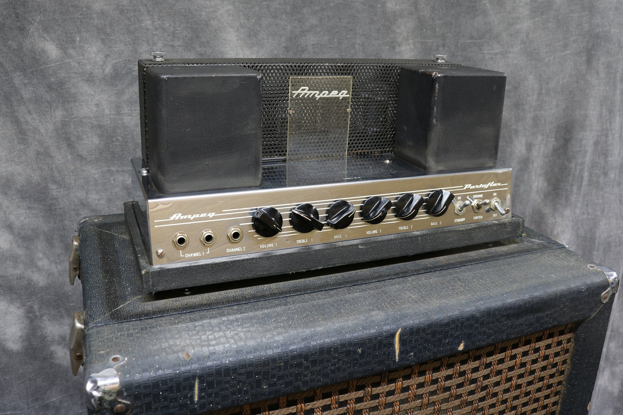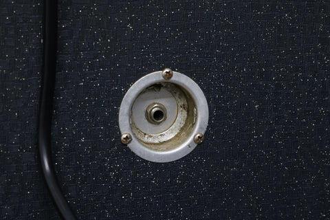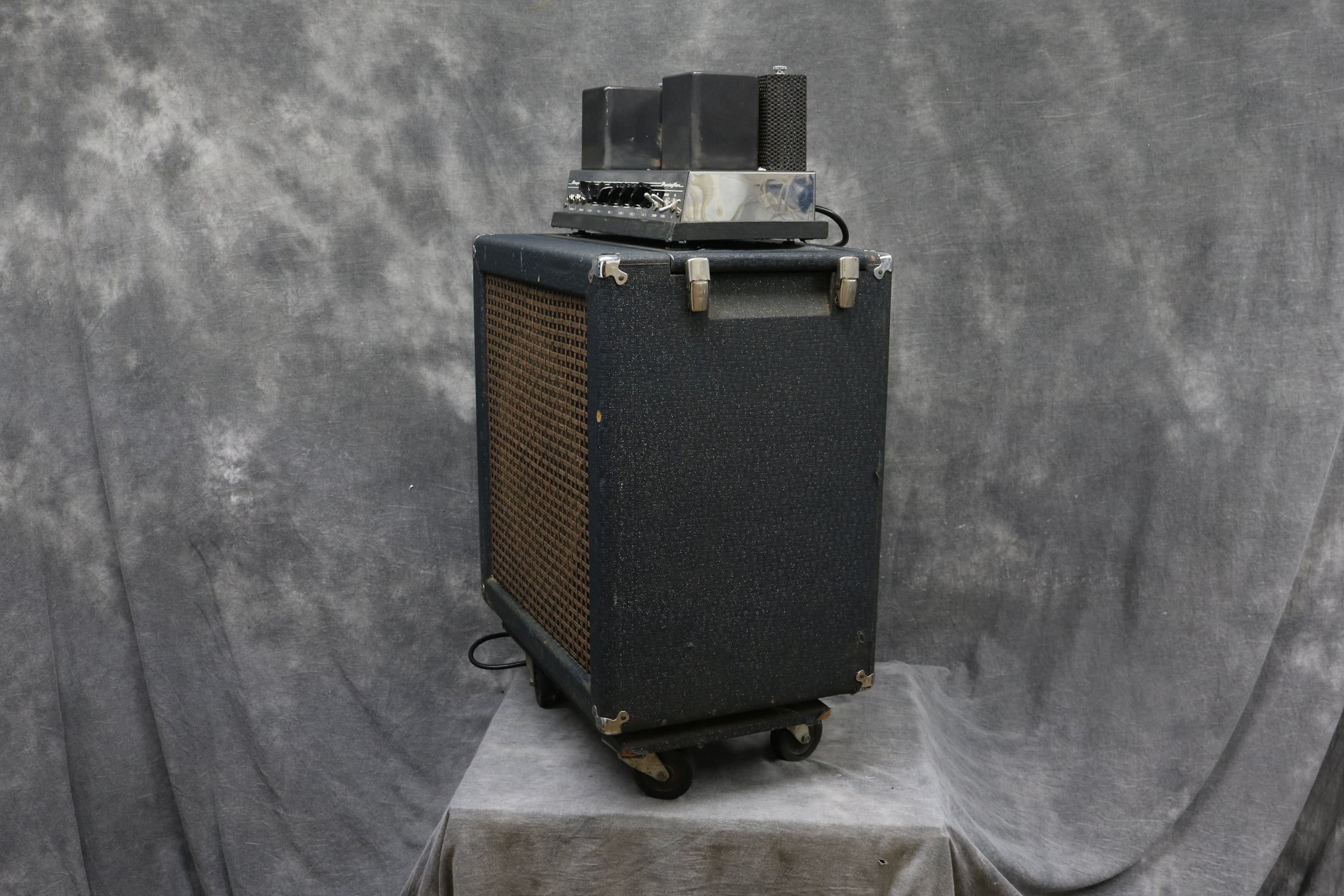 1962 Ampeg B15NF in fair-good cosmetic condition. 25 watts. Serial:205359. This is a rare amp with not many seen on the market. The lucite Ampeg light up logo had only been introduced a year earlier and the navy random flair tolex was soon to be changed for the more common blue-check version in late 62. So to find one with both the random flair tolex and the light up logo is rare.