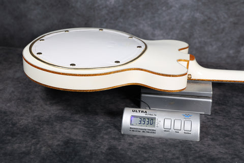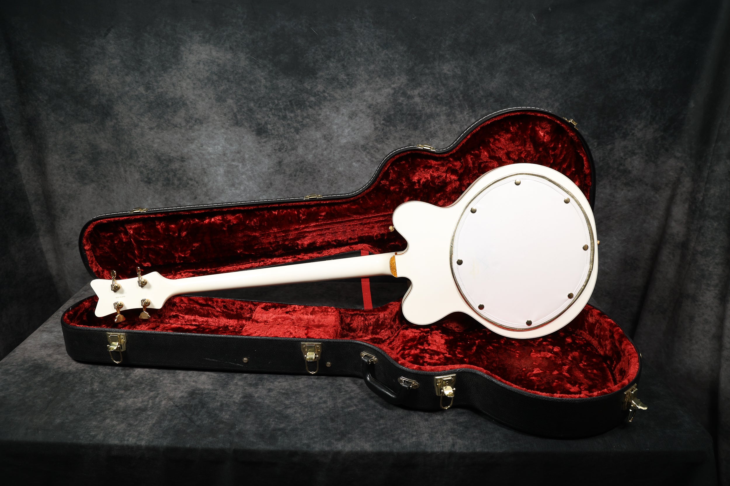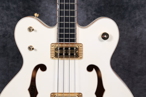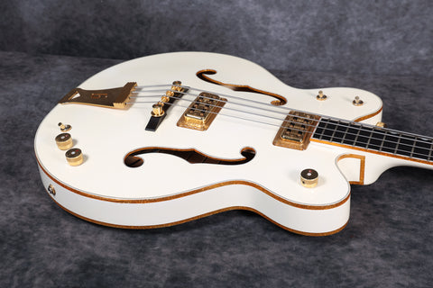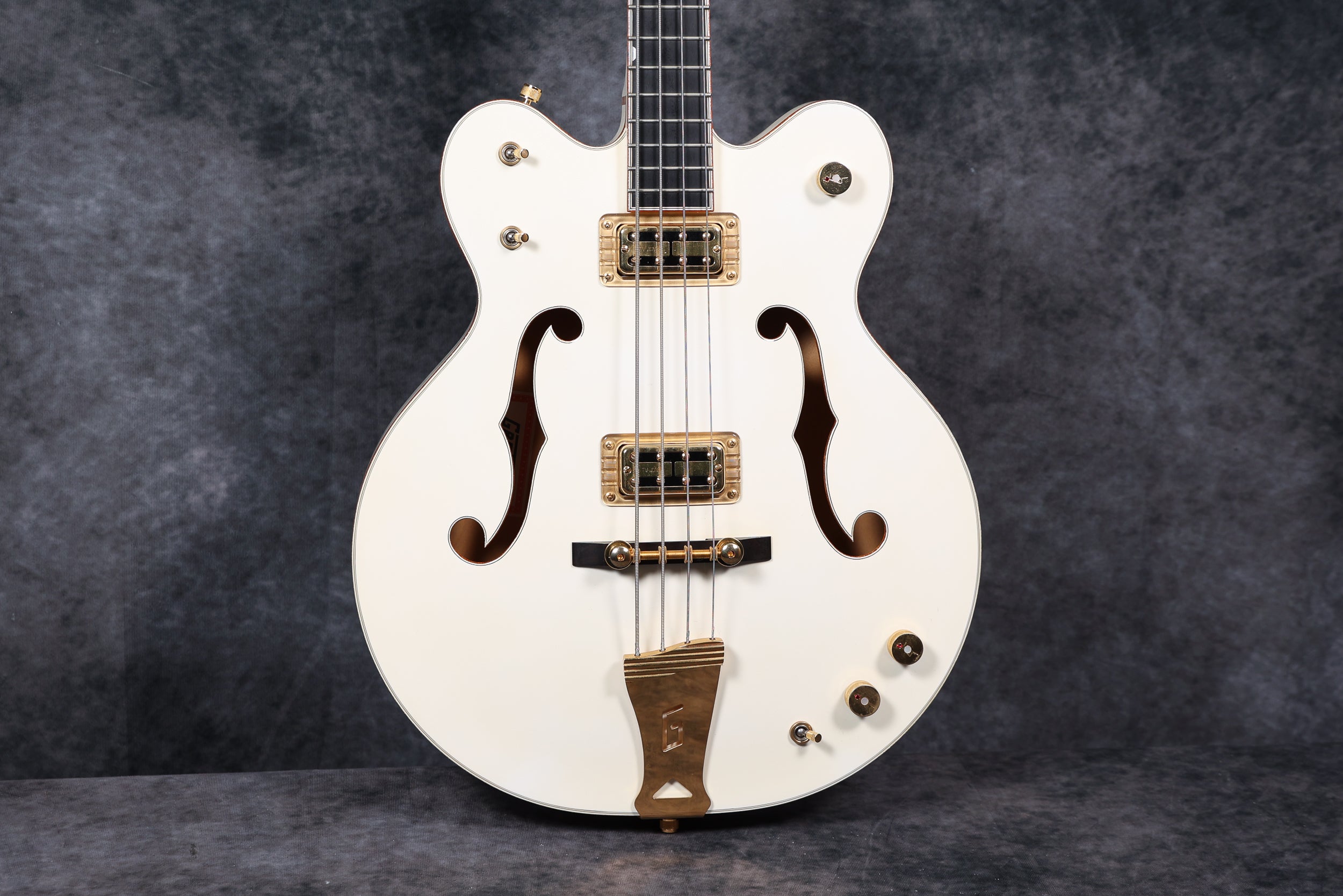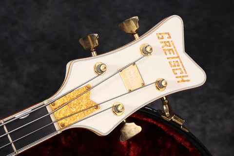 2007 Gretsch G6136LSB White Falcon Bass in near-mint condition. All original and complete, including the case. Fully set up in our workshop with lovely action, allowing excellent playability. Weight 8 lbs 11 oz / 3.93 kg. Serial: JT07073516. Nut Width: 40.5 mm. Depth at 1st fret: 21 mm.